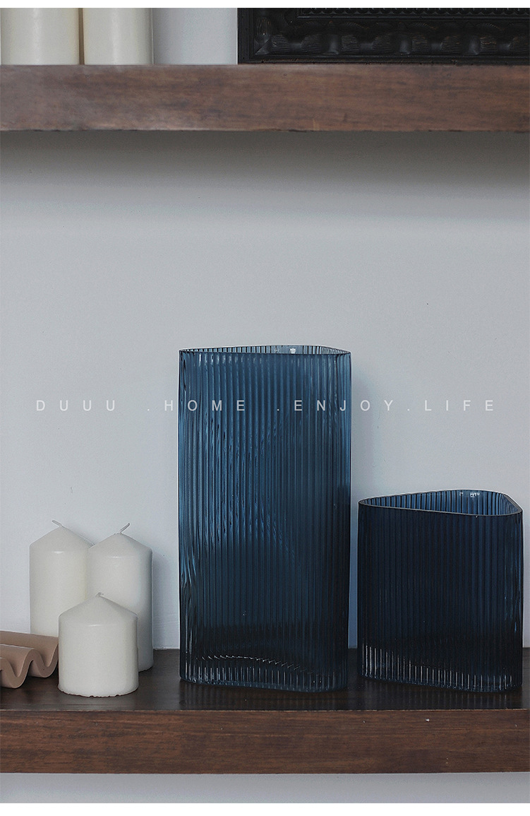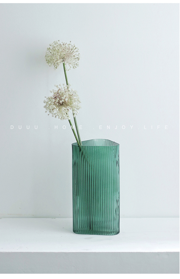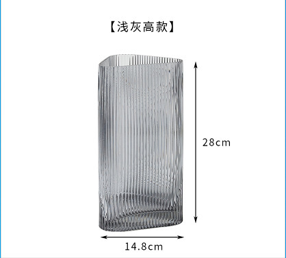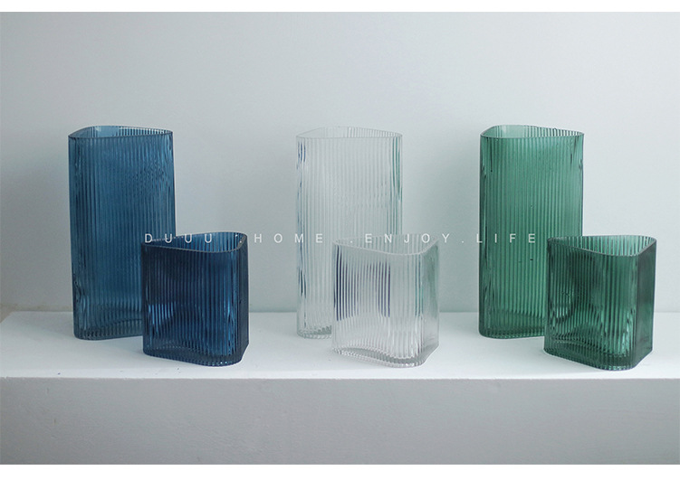 북유럽 현대 수경 유리 꽃병 장식품 크리 에이 티브 기하학적 수직 스트립 삼각형 꽃 모델 룸 꽃 배열