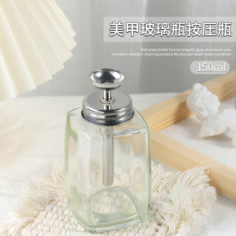 네일 아트 프레스 병 유리 높은 투과성 섬세한 깨끗한 물 배출 네일 세척 펜 도구 스테인레스 스틸 펌프 내구성 실키 효과스토어 가기