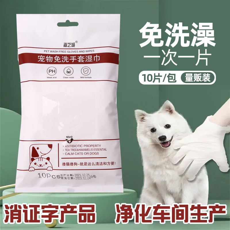 애완 동물 목욕, 개와 고양이 청소, 탈취, 소독 및 살균을 위한 일체형 애완 동물 일회용 청소 장갑 10팩스토어 가기