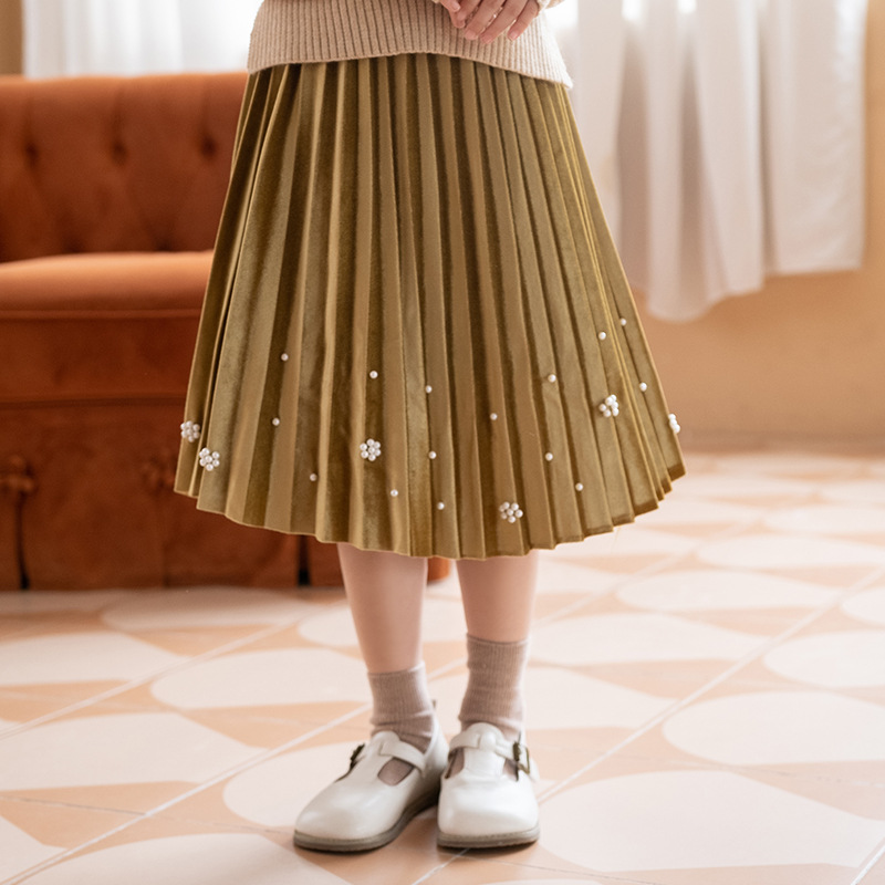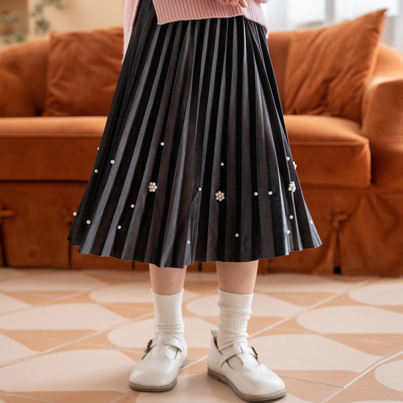 소녀의 가을 벨벳 스커트 가을과 겨울 새로운 대형 어린이 A-라인 스커트 소녀의 서양식 공주 스커트 플리츠 스커트스토어 가기