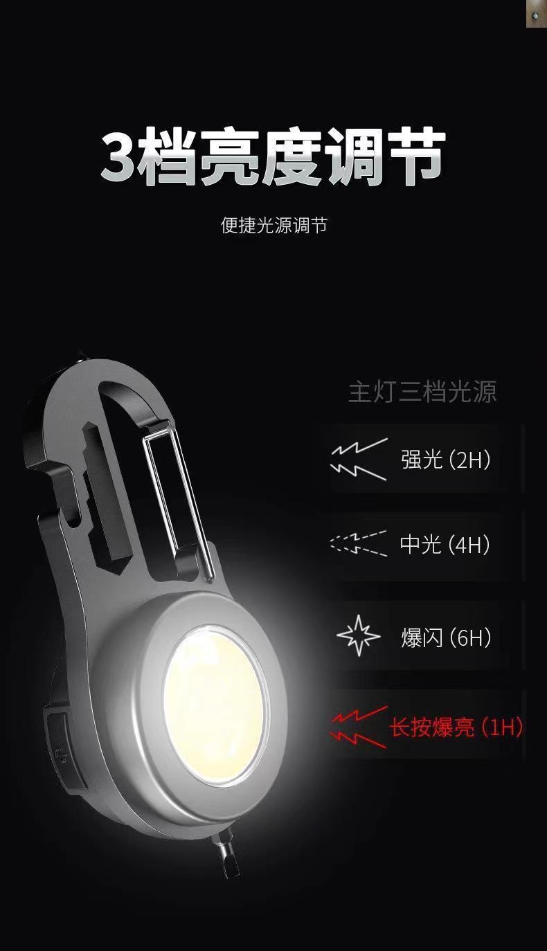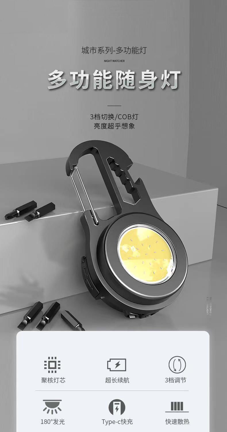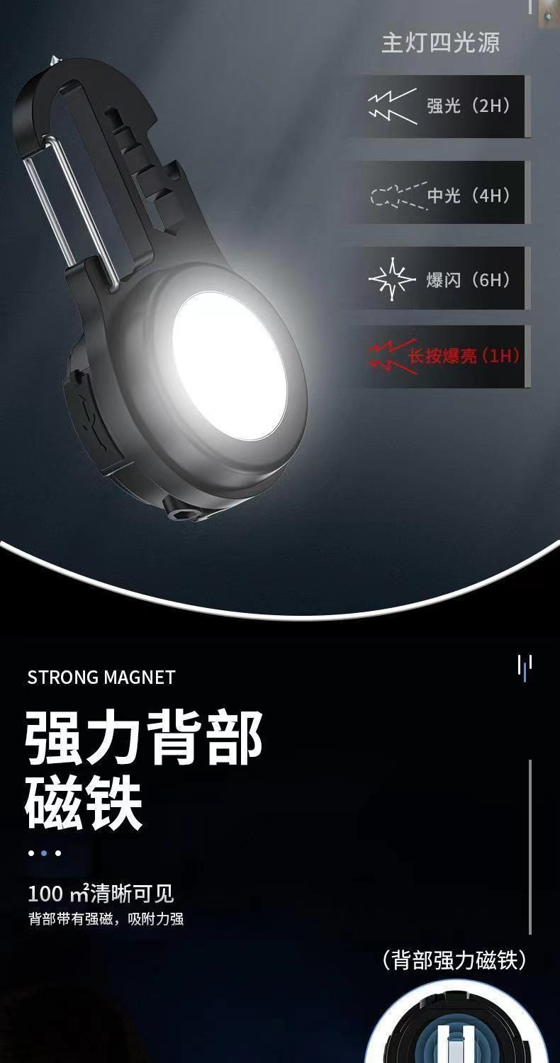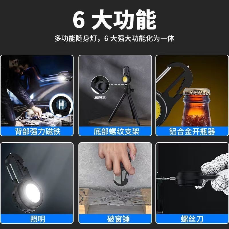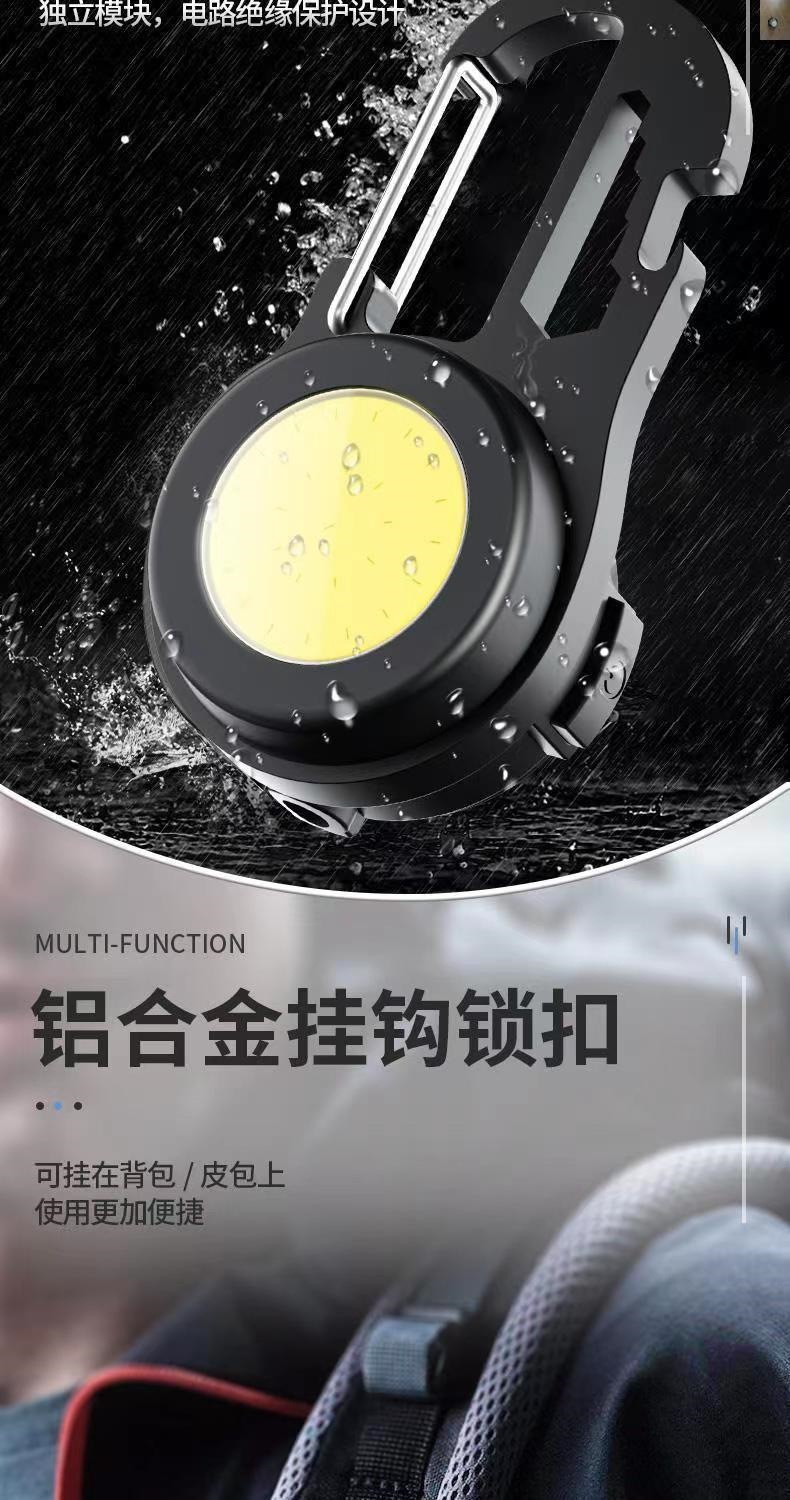 고휘도 소형 손전등 COB 클립 캡 키 체인 라이트 충전식 강력한 자기 휴대용 야외 작업 조명 자기 흡입