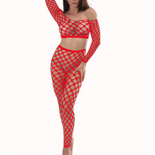 欧美黑色情趣烫钻连体衣镂空带钻石性感网眼提花网衣紧身衣厂家