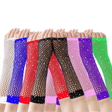 烫钻网格成人手套五指彩色透气时尚闪钻网眼蹦迪女士服装配饰手套