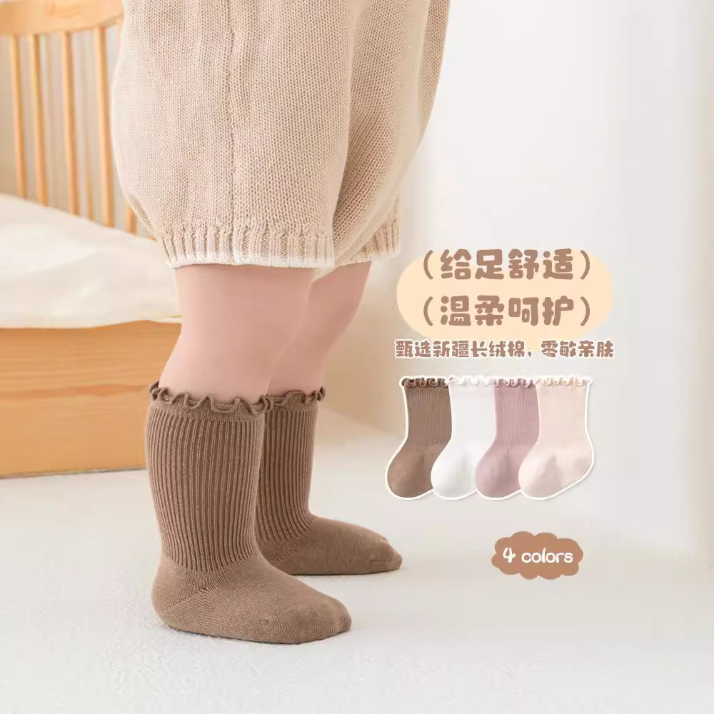 어린이 스타킹 봄과 가을 새로운 빗질면 통기성 소년과 소녀 양말 넓은 챙 뼈없는 신생아 양말