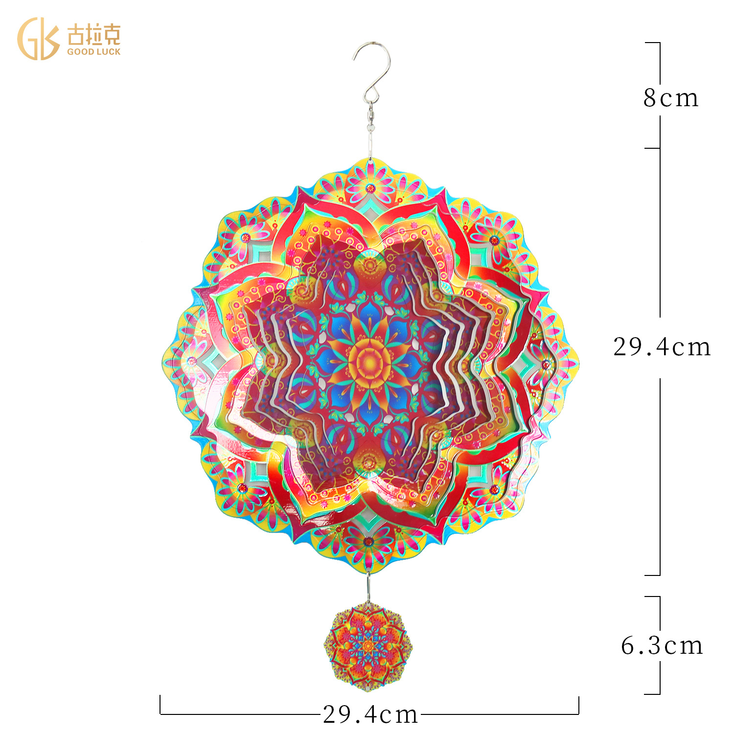국경 간 아마존 전자 상거래 공급 색상 정원 바람 회전 3D 회전 만다라 나선형 스테인레스 스틸 바람 차임 장식품