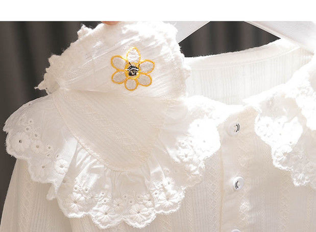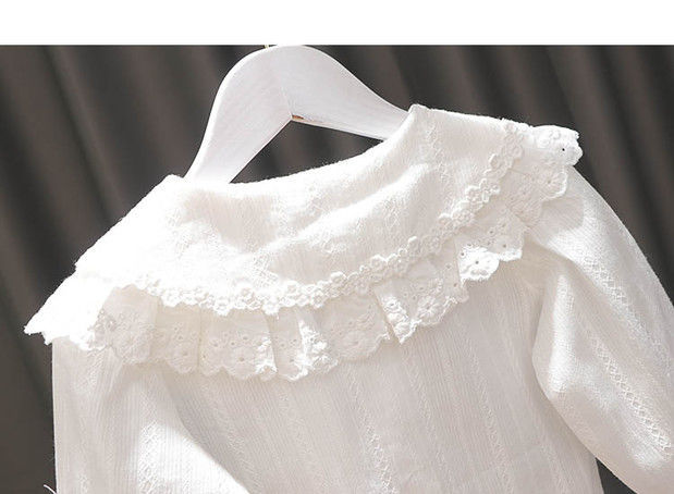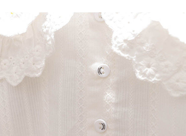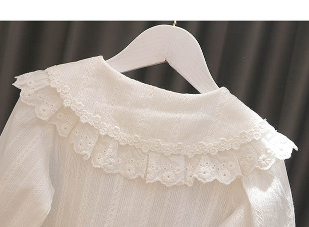 2025 새로운 가을 옷 아기 소녀 유아 한국 스타일 더블 레이어 레이스 칼라 셔츠 바닥 셔츠 탑