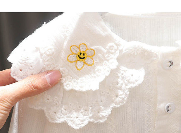 2025 새로운 가을 옷 아기 소녀 유아 한국 스타일 더블 레이어 레이스 칼라 셔츠 바닥 셔츠 탑스토어 가기