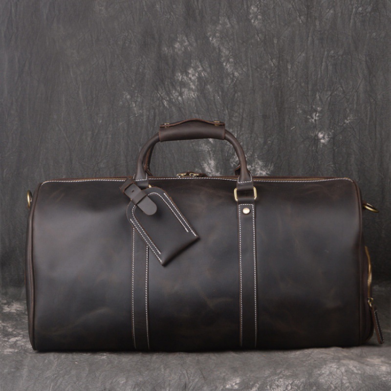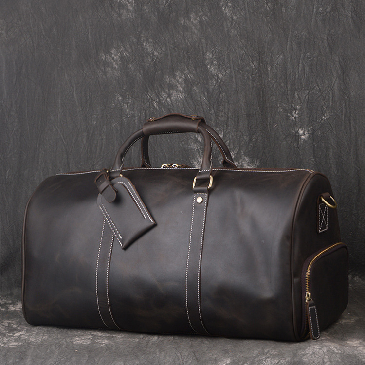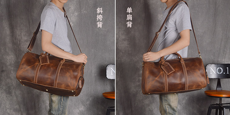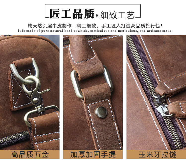 새로운 빈티지 탑 레이어 소가죽 남성용 휴대용 대용량 더플 백 유럽과 미국 미친 말 가죽 숄더 크로스 바디 여행 가방스토어 가기