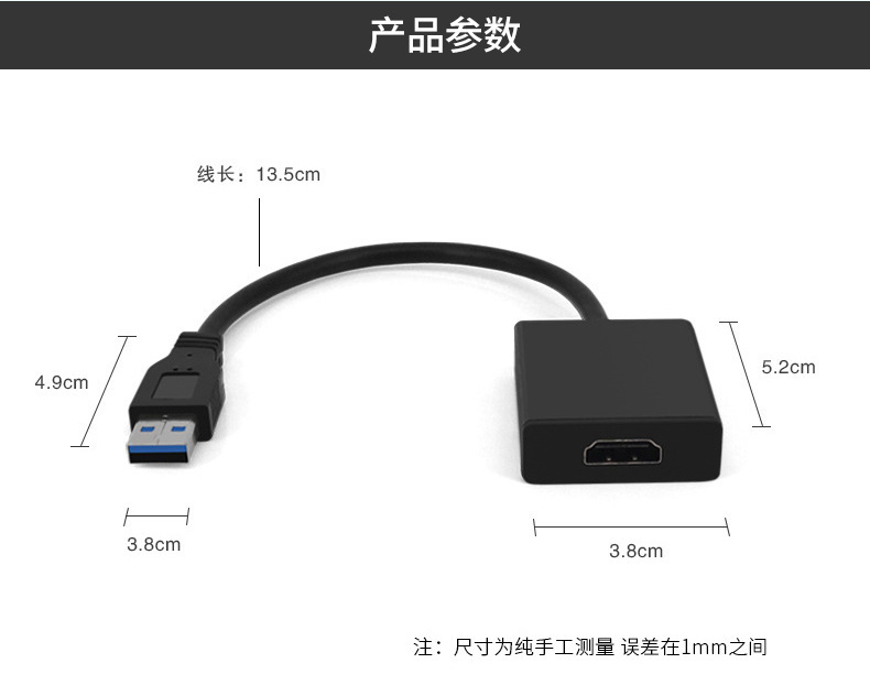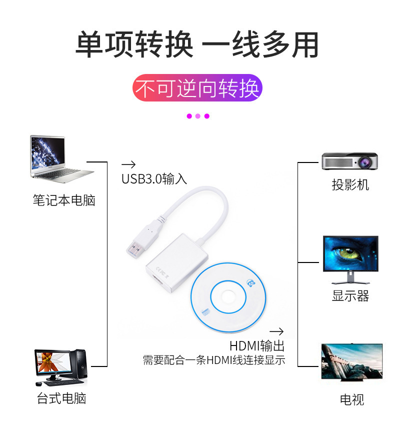 usb转hdmi转接线3.0带驱动usb to hdmi电脑转电视高清1080P转换器