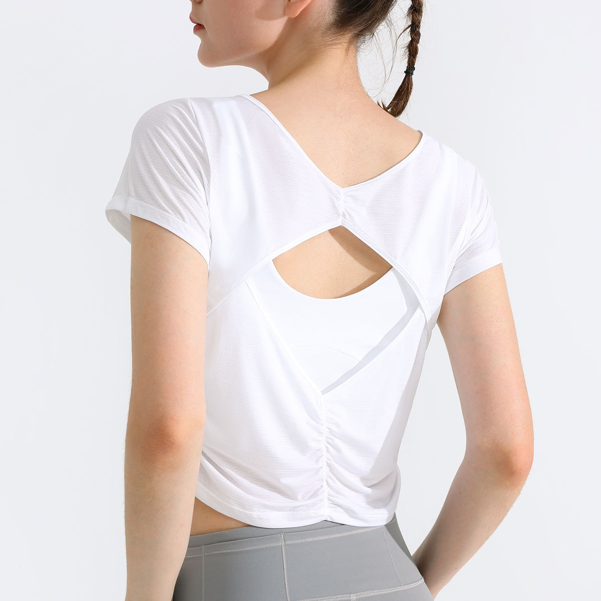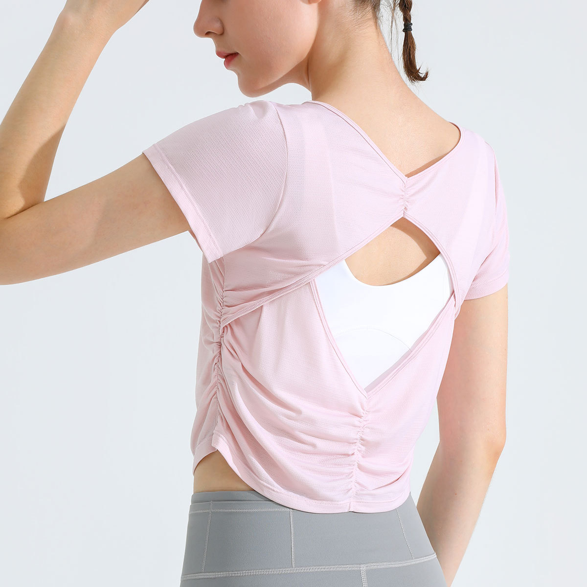 여름 멋진 피트니스 탑 여성용 짧은 달리기 스포츠 티셔츠 통기성 아름다운 등 요가 슬림핏 반팔 얇은 블라우스