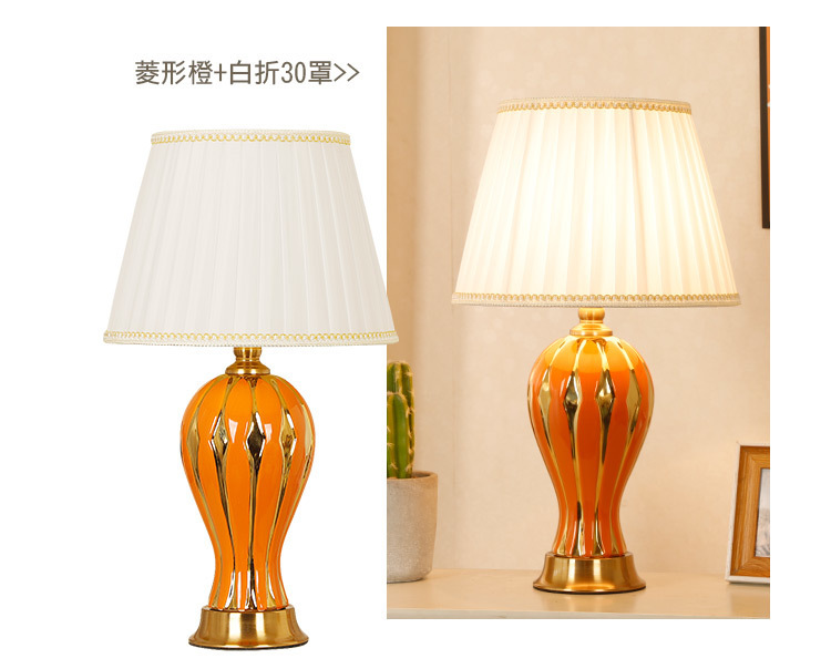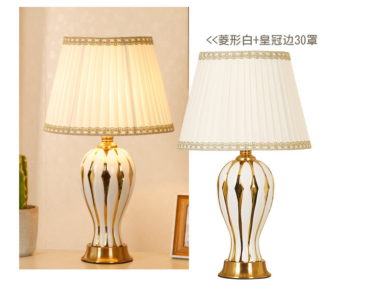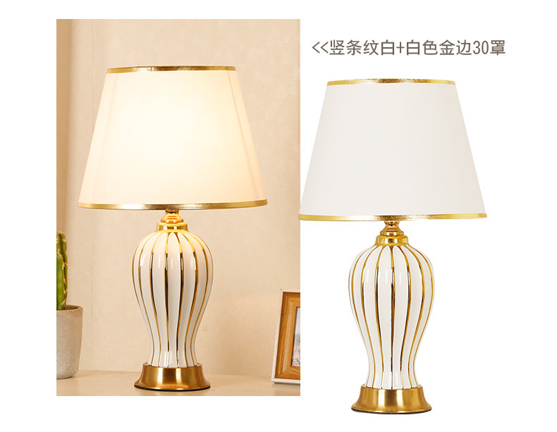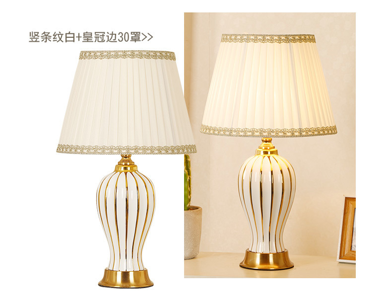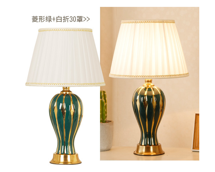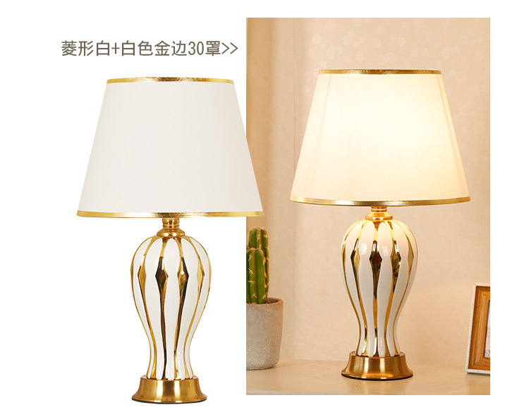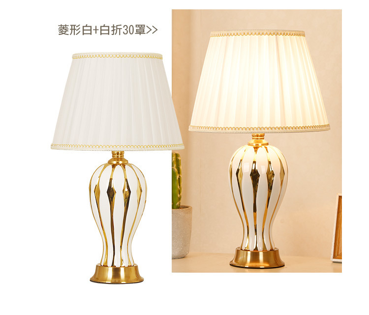 세라믹 테이블 램프 북유럽 빛 고급 홈 마스터 침실 거실 간단한 현대 미국 낭만적 인 따뜻한 결혼식 침대 옆 램프