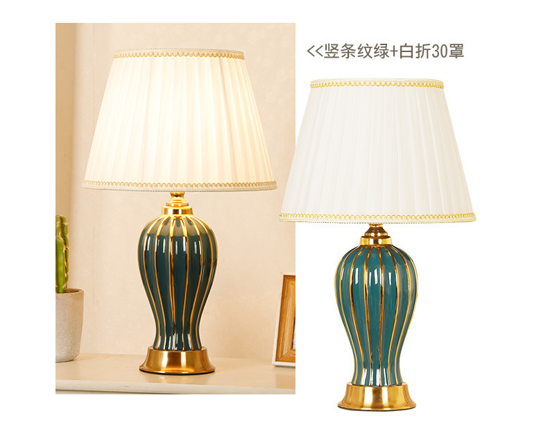 세라믹 테이블 램프 북유럽 빛 고급 홈 마스터 침실 거실 간단한 현대 미국 낭만적 인 따뜻한 결혼식 침대 옆 램프스토어 가기