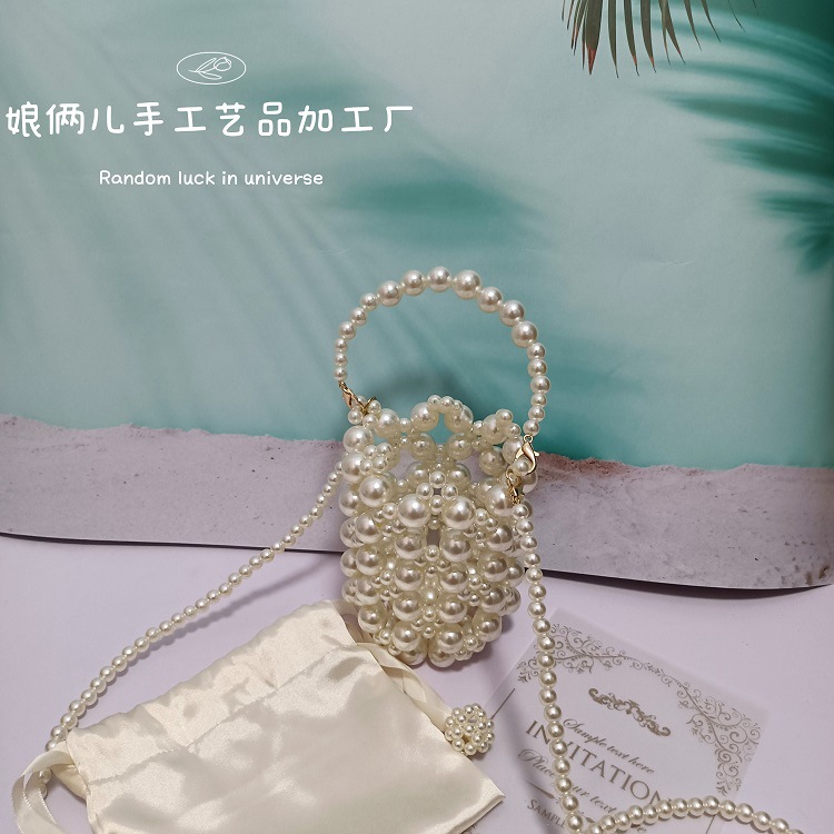 실린더 진주 가방 수제 가방 끈 구슬 가방 구슬 가방 크로스 바디 휴대용 틈새 창 샤넬 스타일 짠 여성스토어 가기