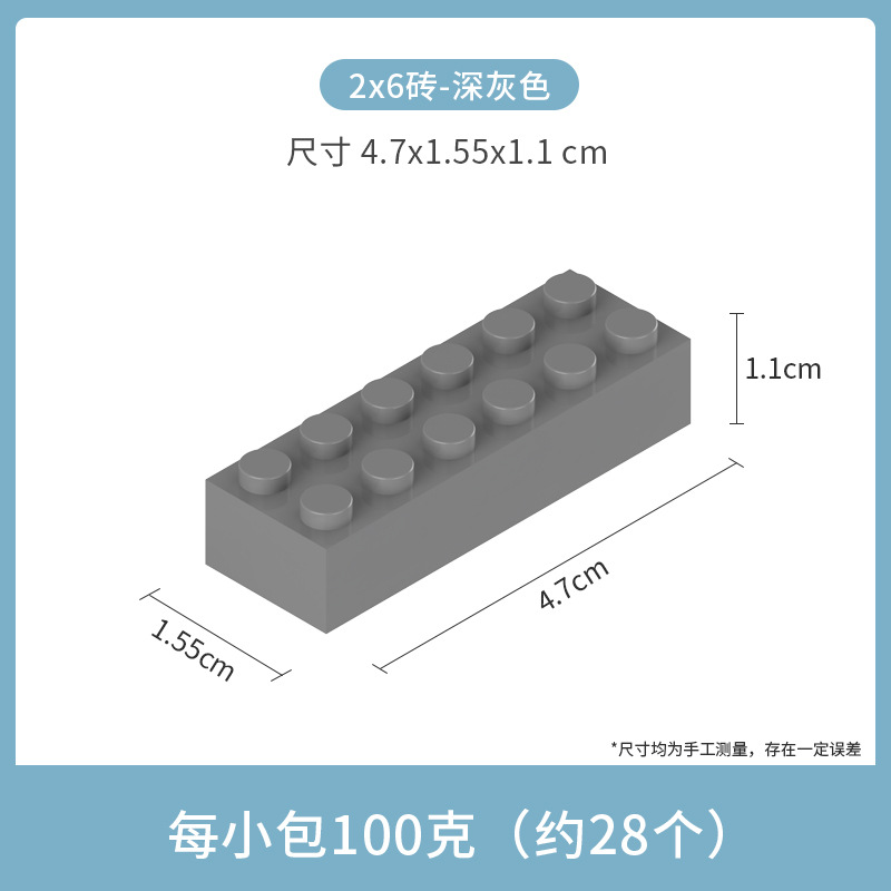 • 작은 입자 2*6 두꺼운 벽돌 12 구멍 다크 그레이 100g