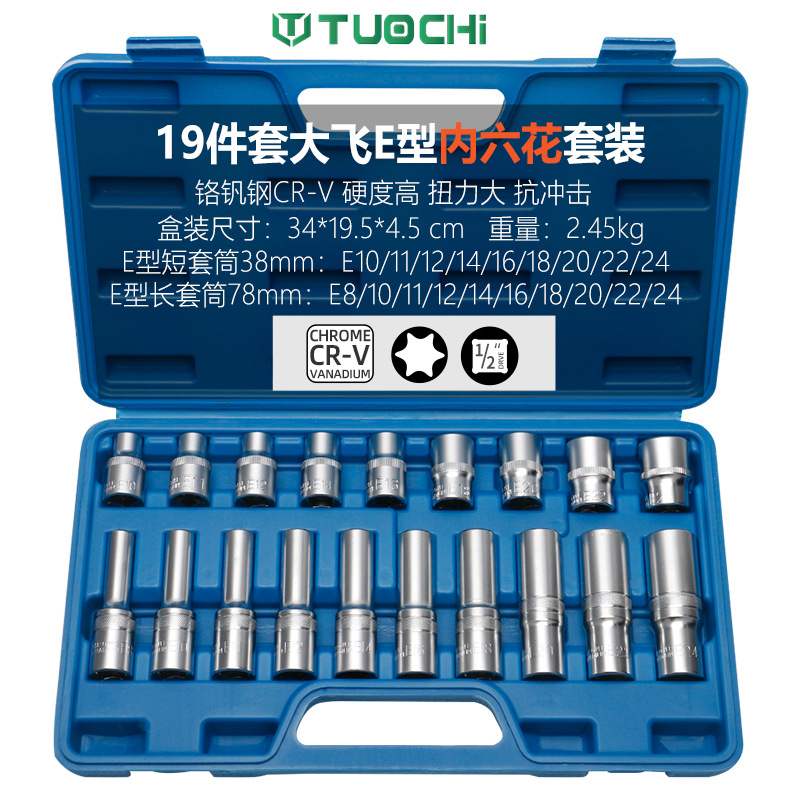 긴 E-소켓 세트 19 피스 세트 대형 플라잉 내부 링 렌치 플로랄 세트 1/2 내부 각도 스플라인 슬리브스토어 가기