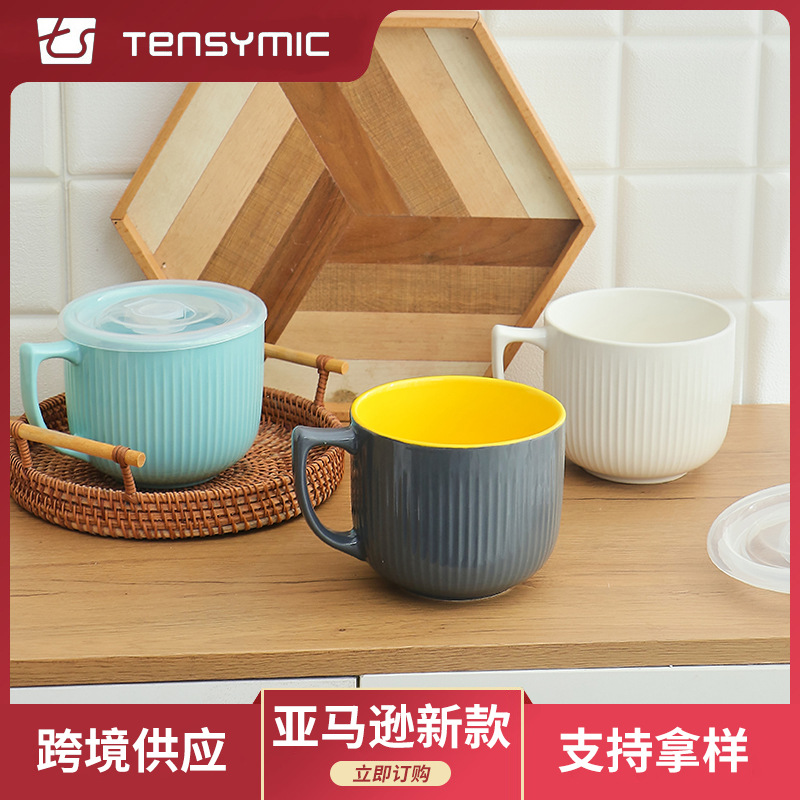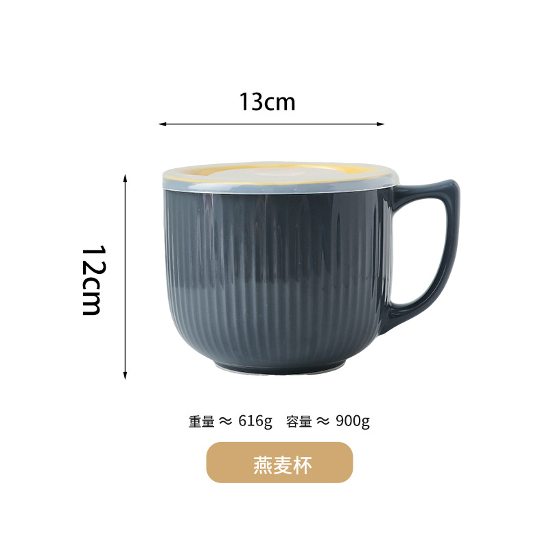 새로운 창조적 인 세라믹 우유 컵 인스턴트 국수 그릇 도매 크로스 보더 가정용 오트밀 컵 뚜껑 대용량 아침 식사 컵스토어 가기