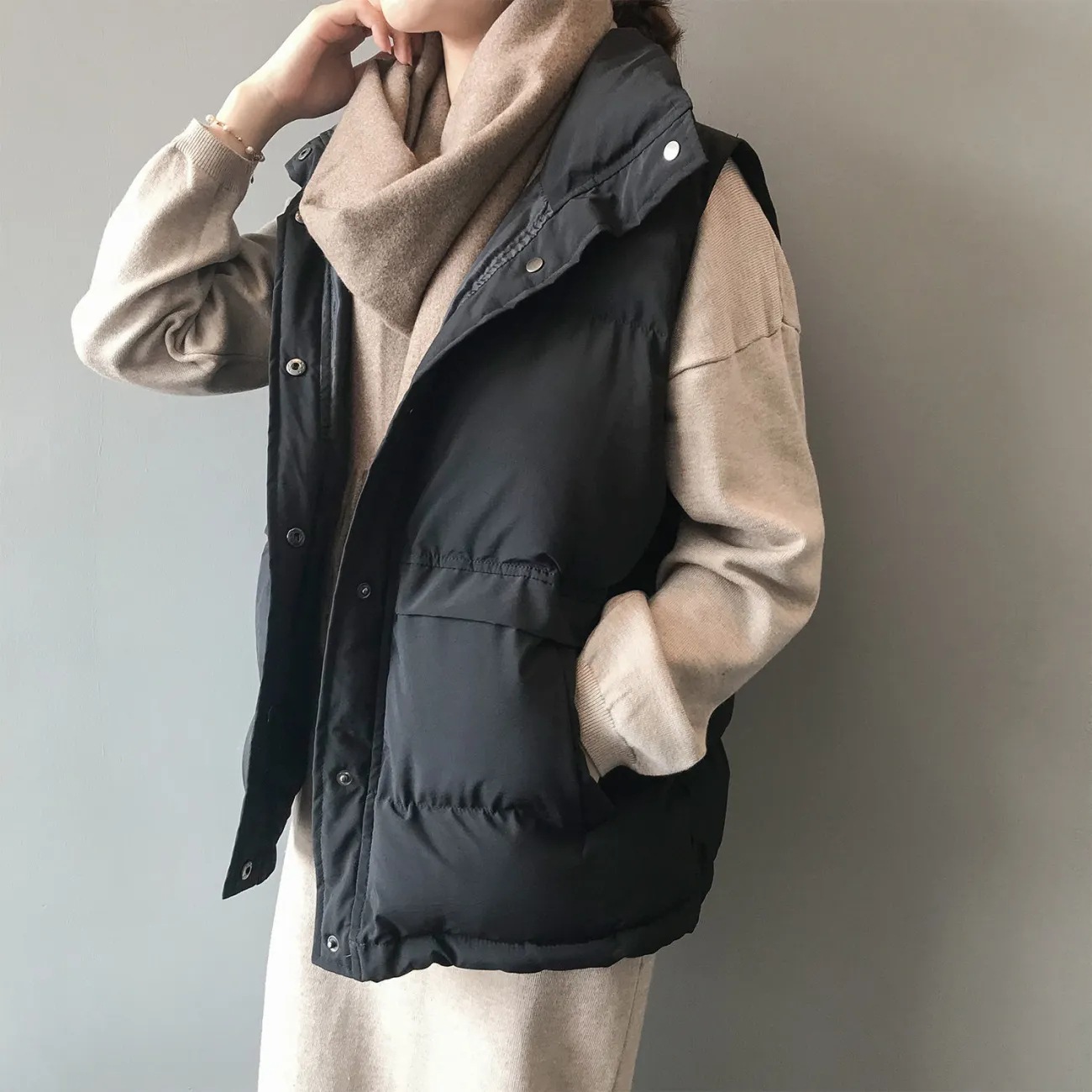 가을과 겨울 신입생 인스 타 그램 스타일 유행 한국 스타일 조끼 여성용 짧은 두꺼운 느슨한 조끼 조끼스토어 가기