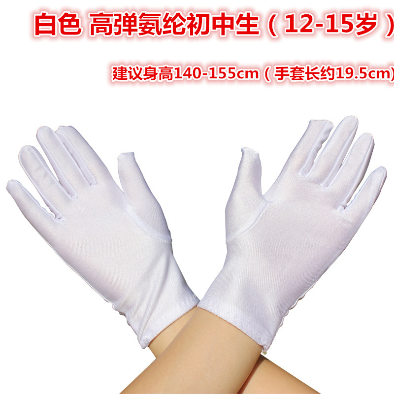 유치원 순수 화이트 어린이 얇은 스판덱스 시계 성능 5 손가락 어린이 에티켓 댄스 학생 높은 탄성 장갑