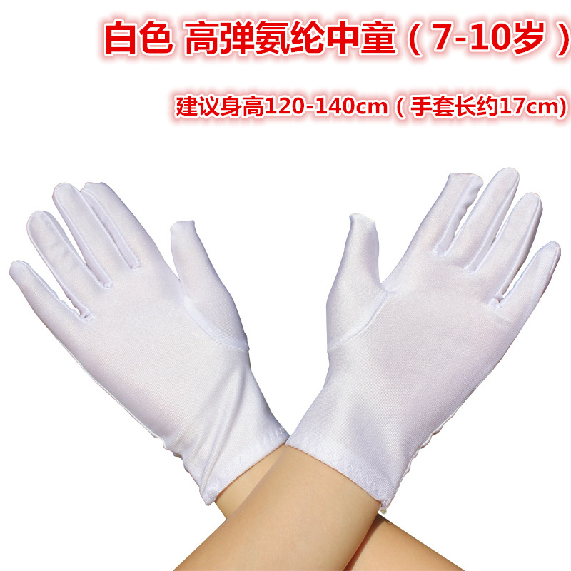 유치원 순수 화이트 어린이 얇은 스판덱스 시계 성능 5 손가락 어린이 에티켓 댄스 학생 높은 탄성 장갑스토어 가기