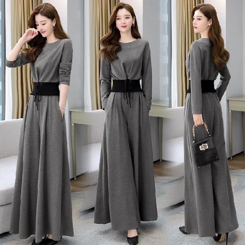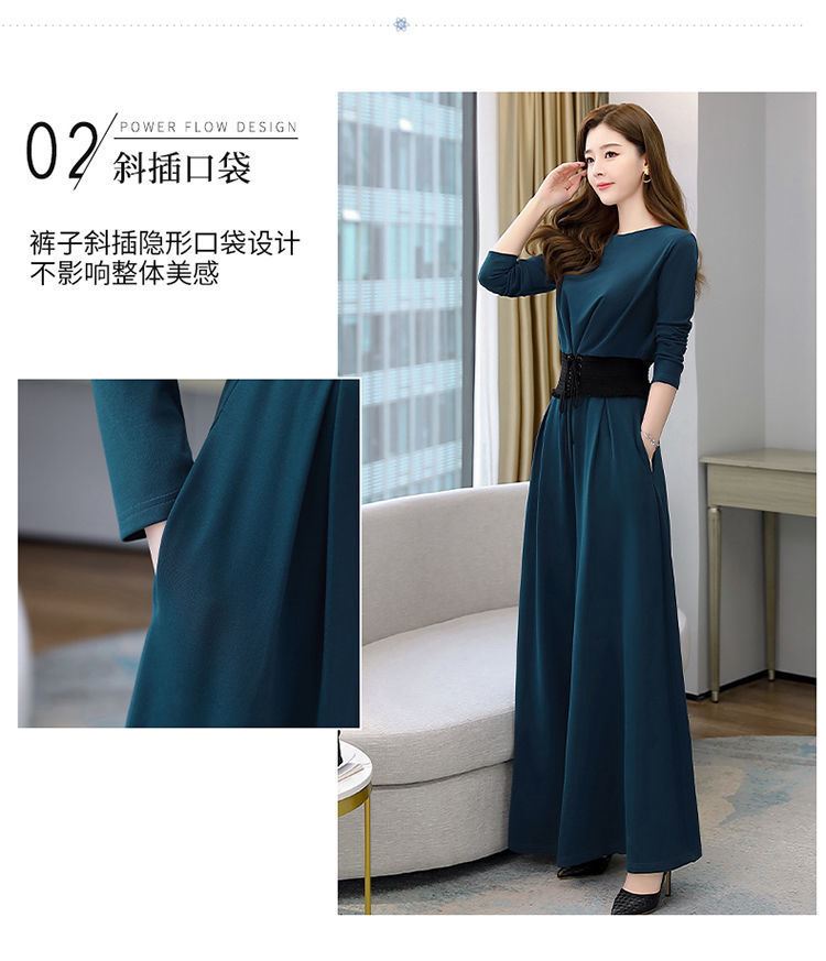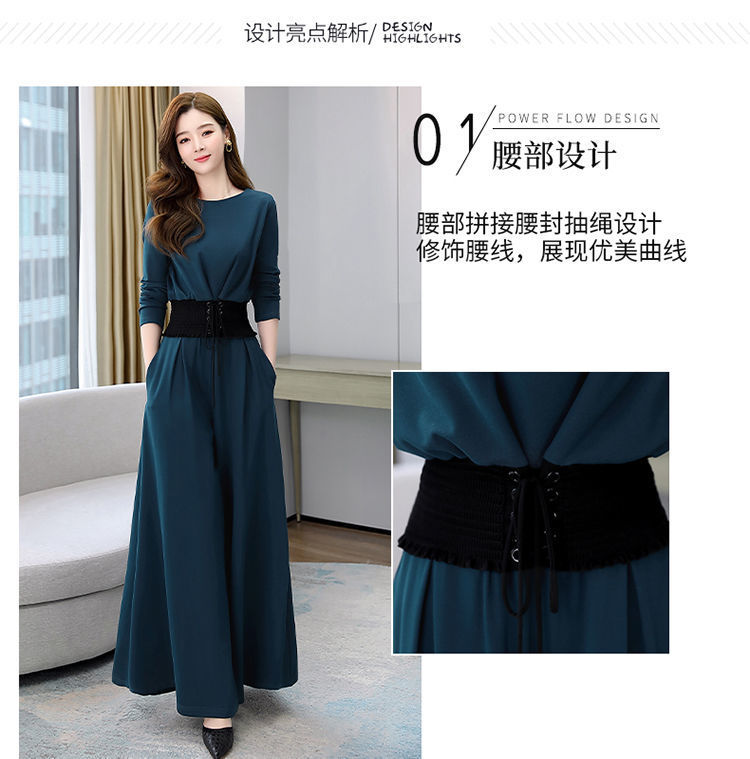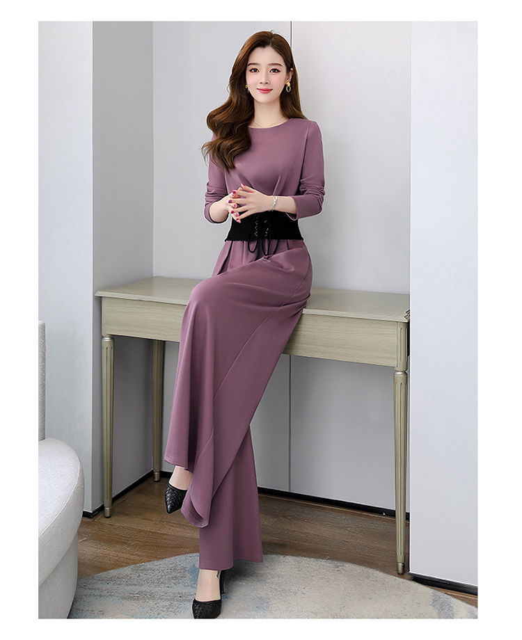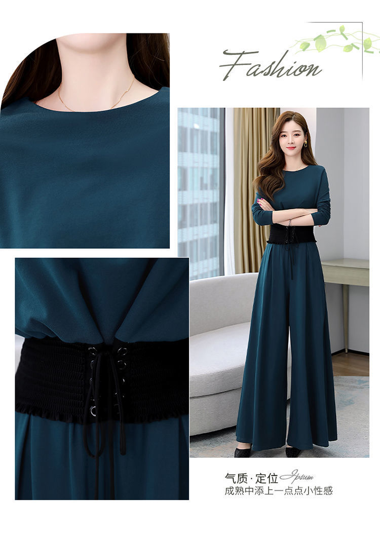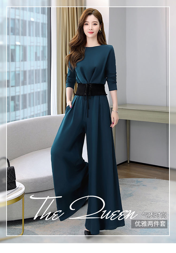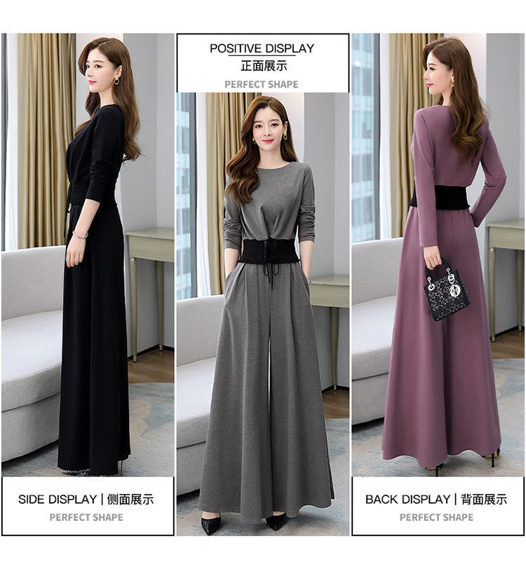 유럽 여성의 새로운 넓은 다리 바지 투피스 세트 새로운 스타일 2025 봄과 가을 연령 감소 패션 대형 전문 정장 여성스토어 가기