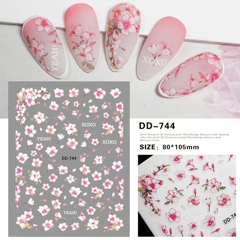 2022 네일 아트 크로스 보더 새로운 다채로운 죽은 잎 나비 신선한 핑크 부드러운 꽃 DD743-748 접착 종이 카드 팩스토어 가기