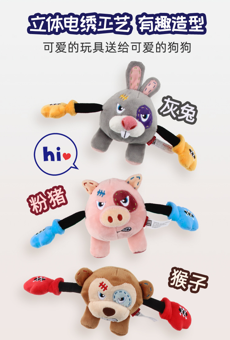 기그위 강아지 장난감 복싱 선수 플러시 소리나는 장난감, 식욕을 돋우고 지루함을 해소하는 내구성 있는 물림 방지 줄다리기 인터랙티브 애완동물 장난감스토어 가기