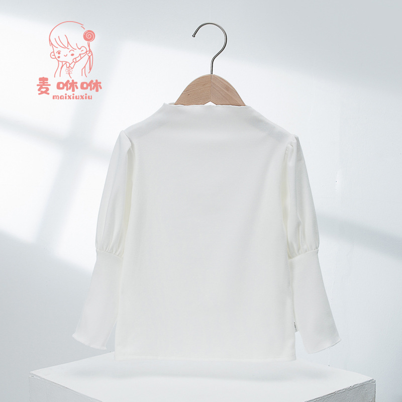 Maisu 2022 여아 아동베이스 셔츠 어린이 봄 가을과 겨울 아기 버블 슬리브 긴팔 벨벳 탑