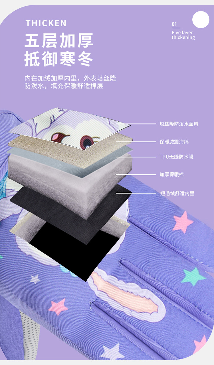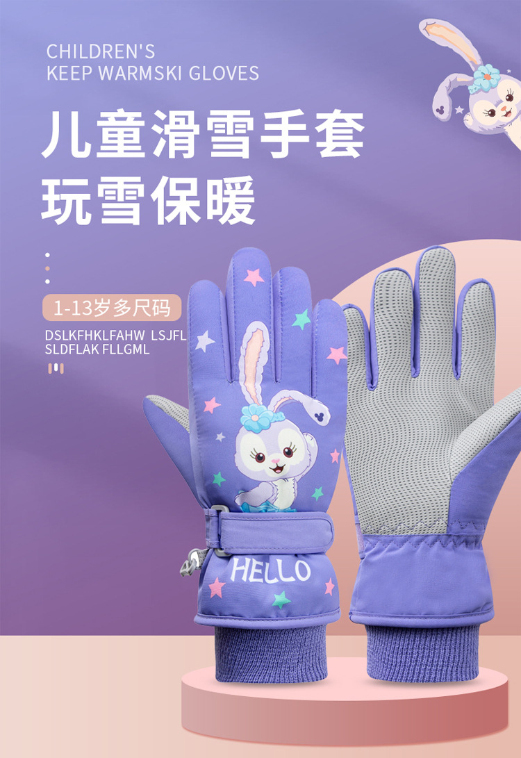 겨울 어린이 따뜻한 스키 장갑 여자 어린이 학생 방수 두꺼운 기모 눈 사이클링 만화 다섯 손가락