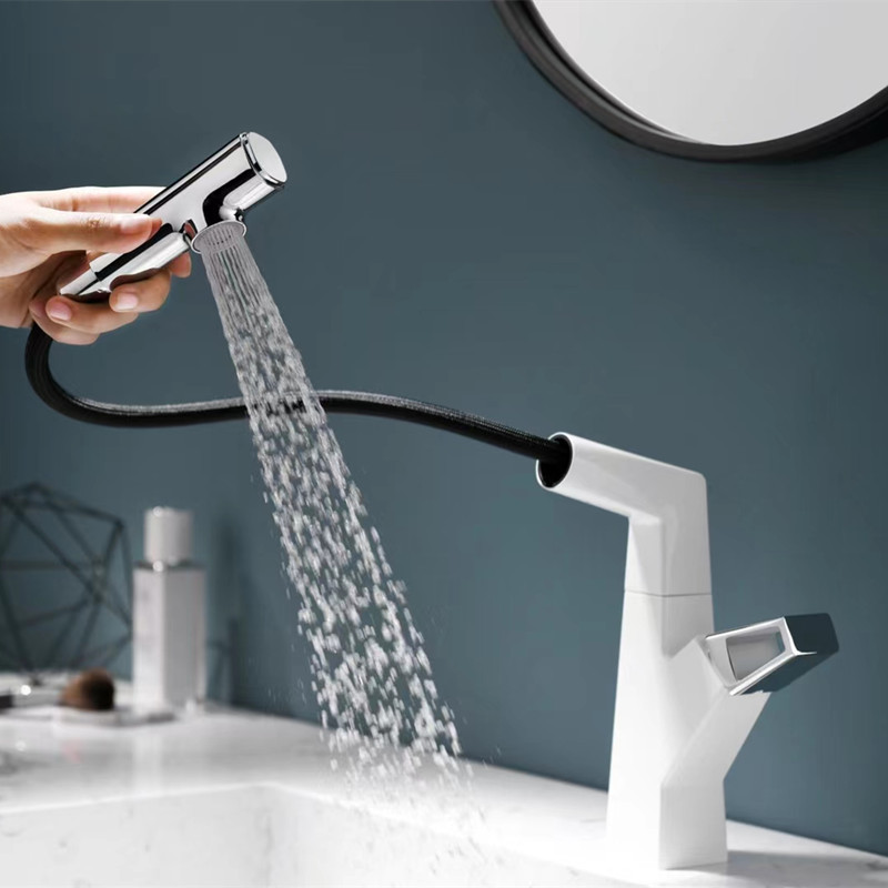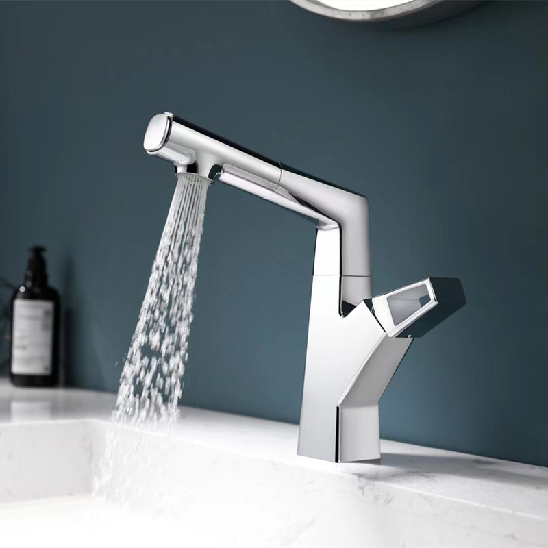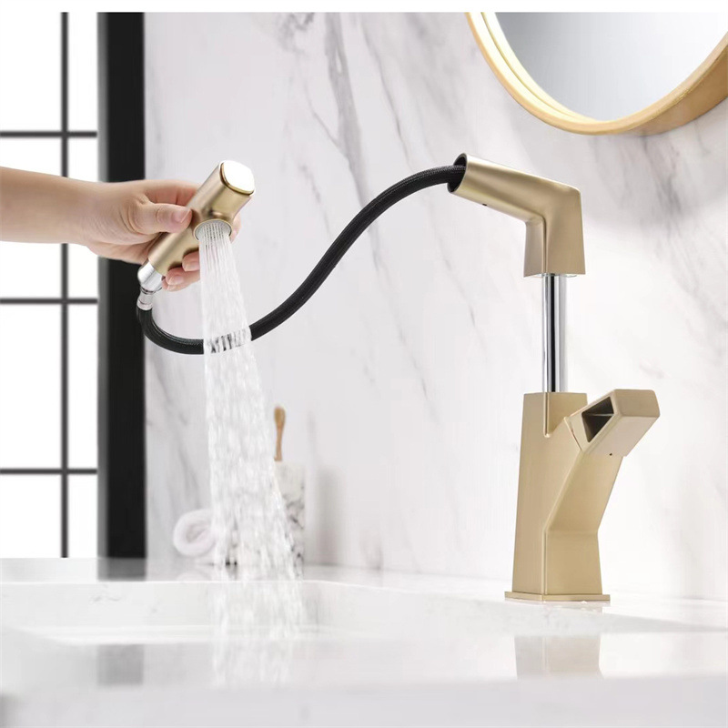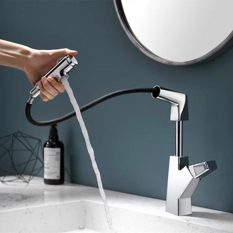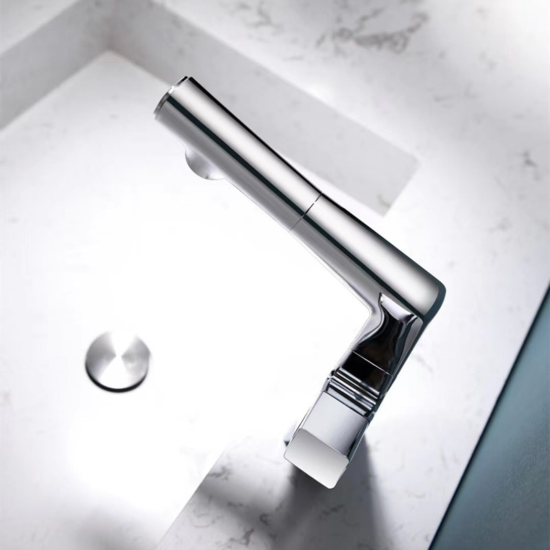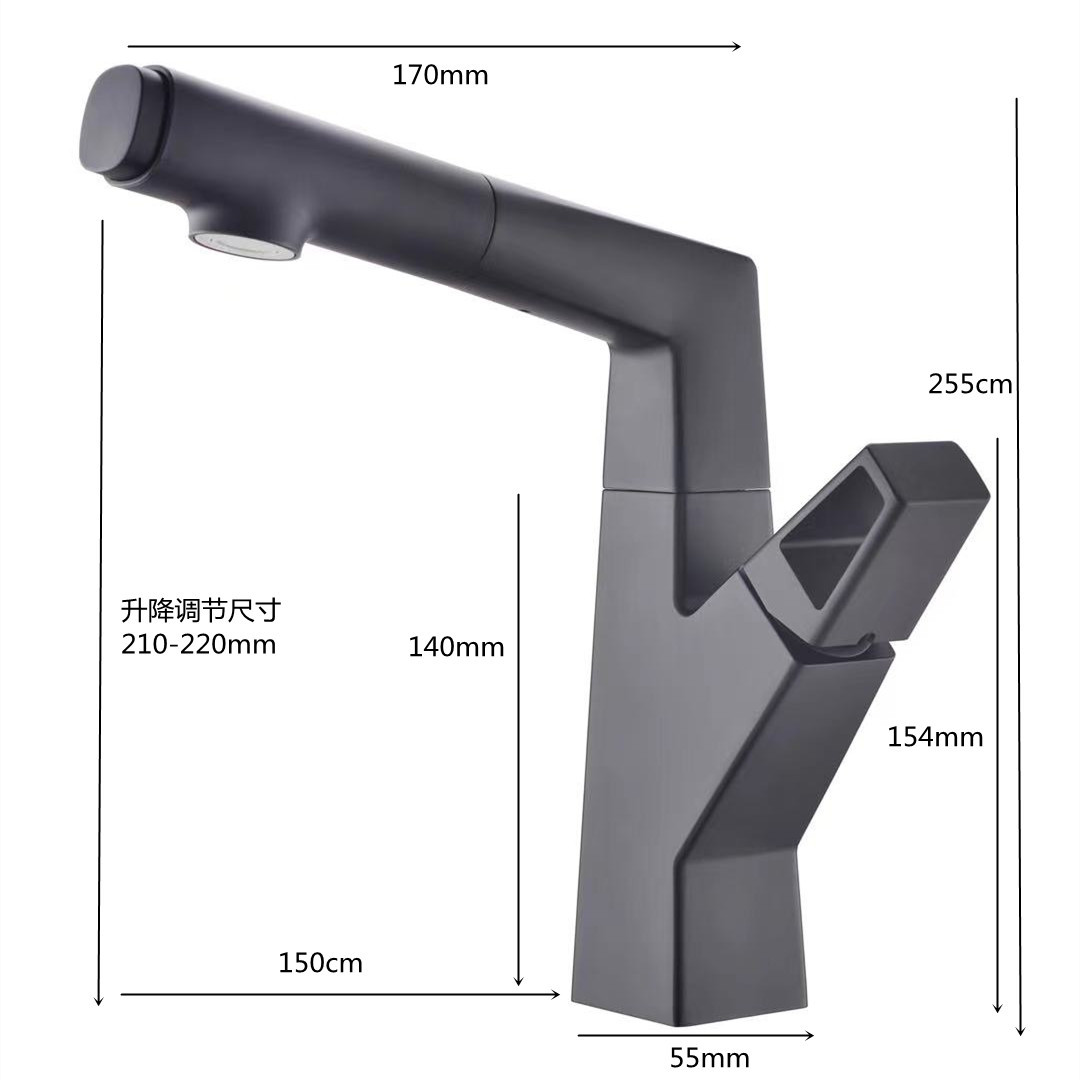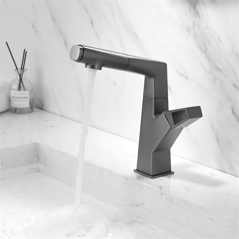 무쿠 건 회색 분지 수도꼭지 리프팅 회전식 텔레스코픽 욕실 분지 수도꼭지 냉수 및 온수 추출스토어 가기