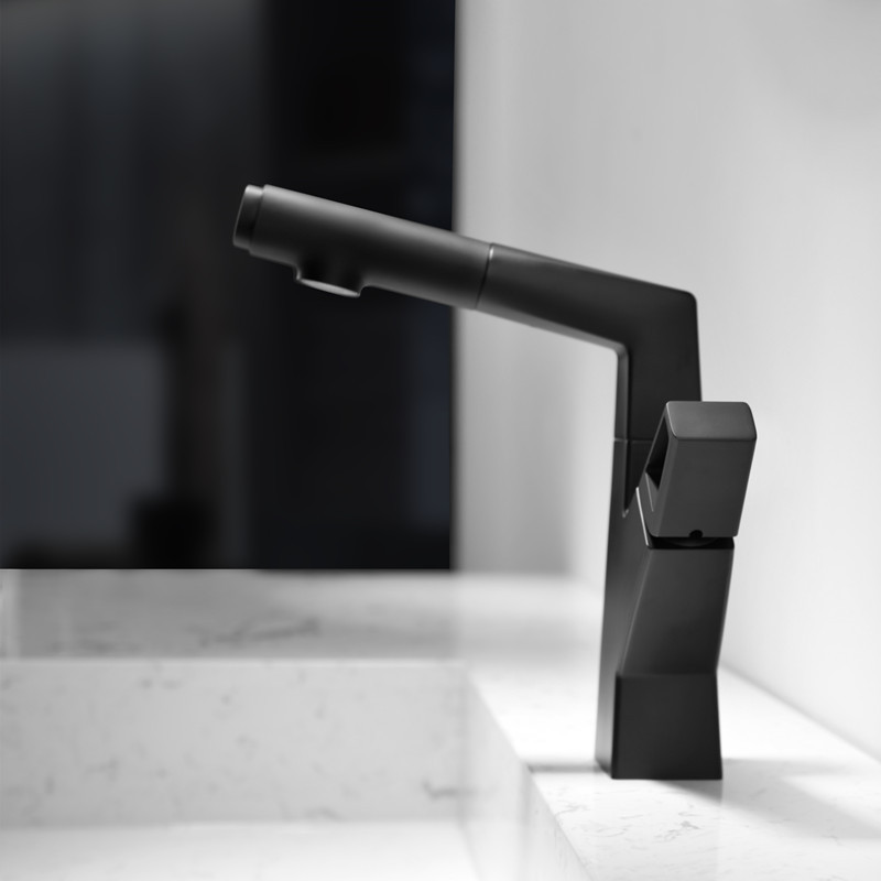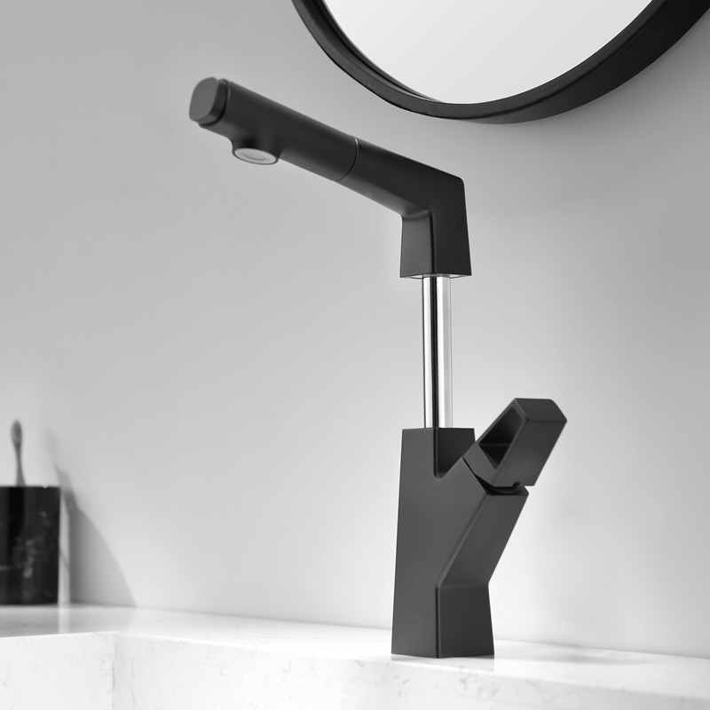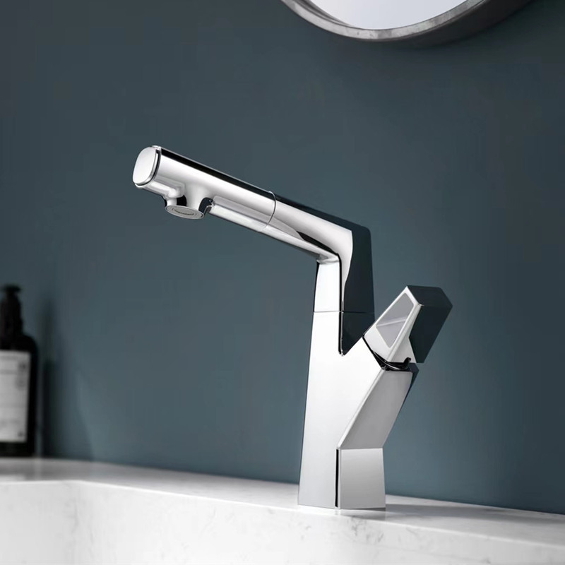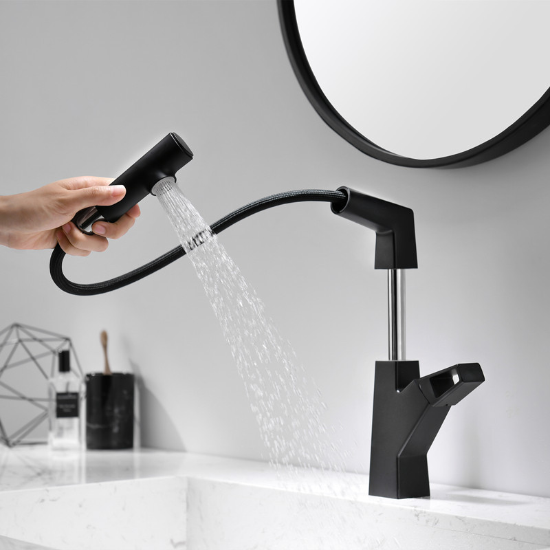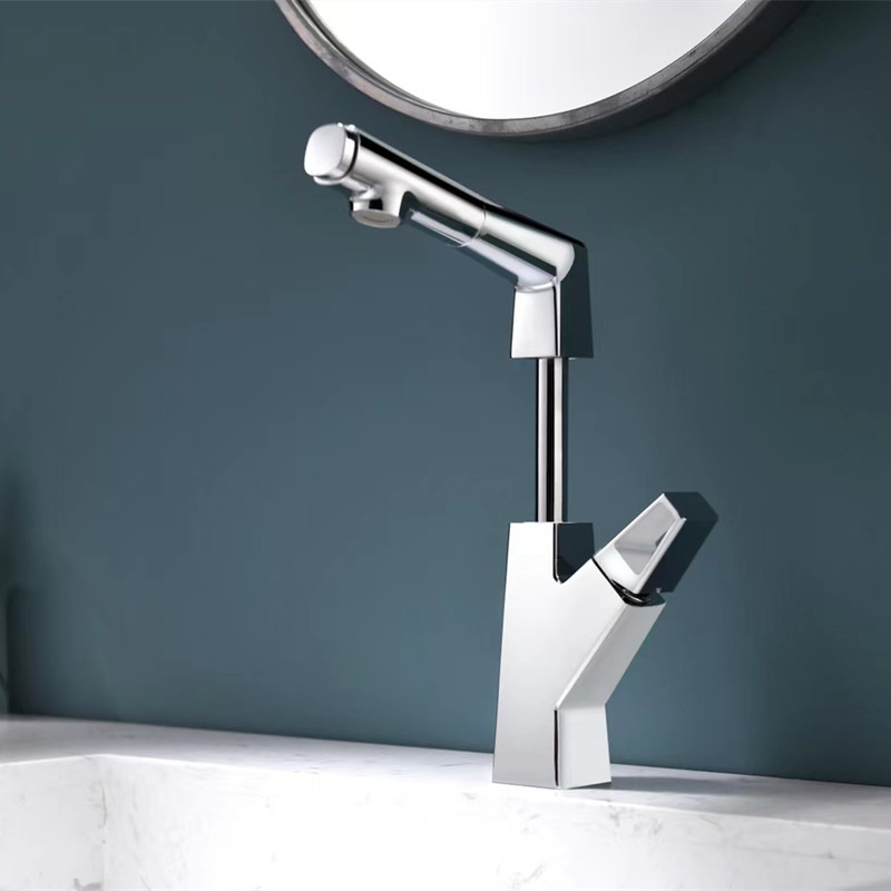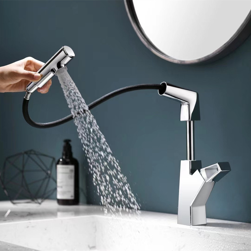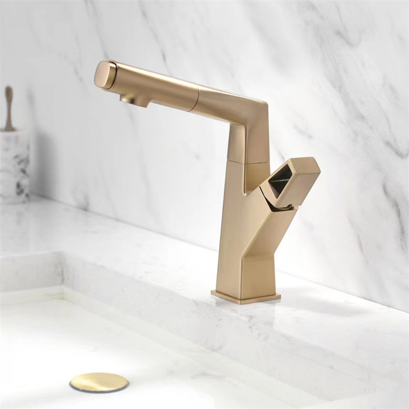 무쿠 건 회색 분지 수도꼭지 리프팅 회전식 텔레스코픽 욕실 분지 수도꼭지 냉수 및 온수 추출
