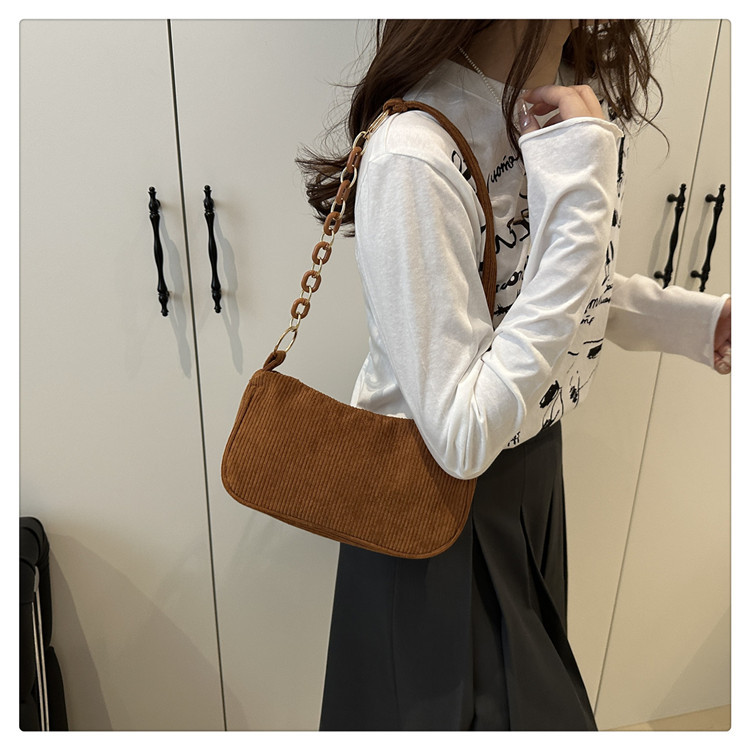한국 스타일 예술적 천 가방 심플 캐주얼 스트라이프 벨벳 숄더 여성 가방 단색 미니 크로스 바디 백 휴대용 캔버스 가방