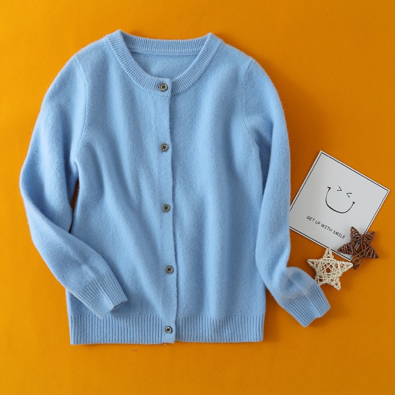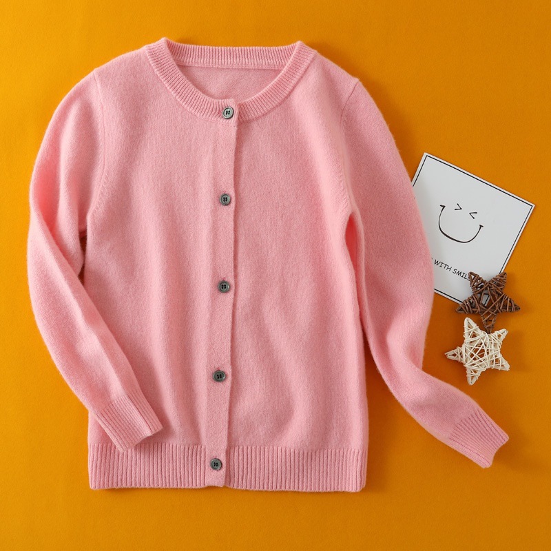 어린이 캐시미어 스웨터 가을과 겨울 남아 니트 베이스 셔츠 여아 캐주얼 라운드 넥 단색 두꺼운 스웨터 울 가디건
