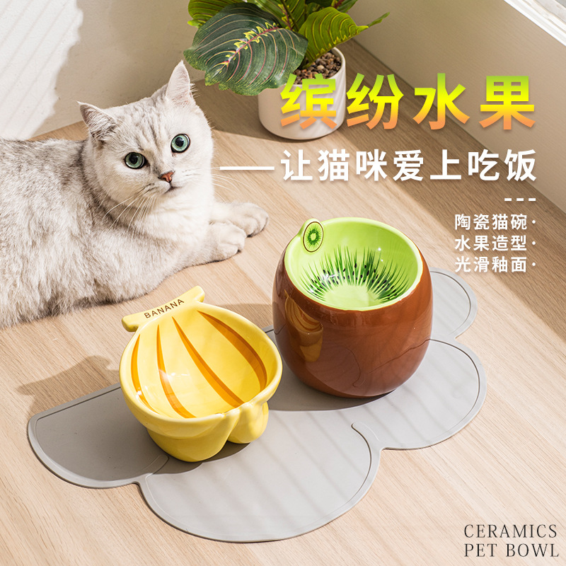 고양이 그릇 세라믹 고양이 먹이 분지 보호 경추 비스듬한 애완 동물 용품 키 큰 그릇 고양이 먹이 물분지 개 고양이 밥 그릇스토어 가기