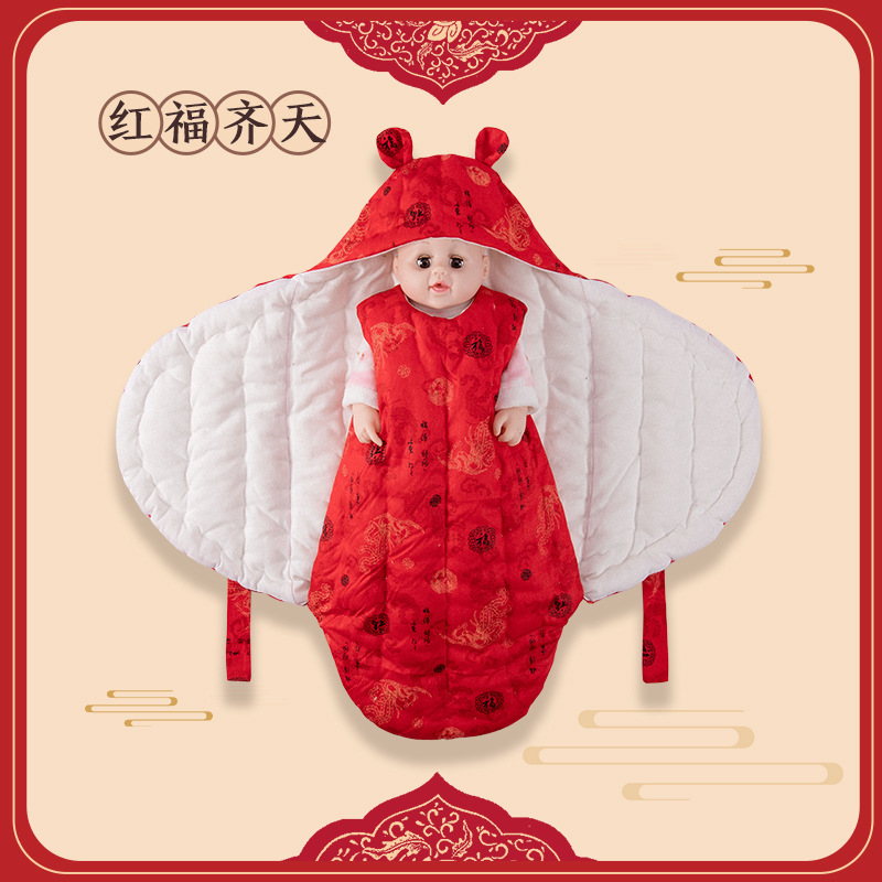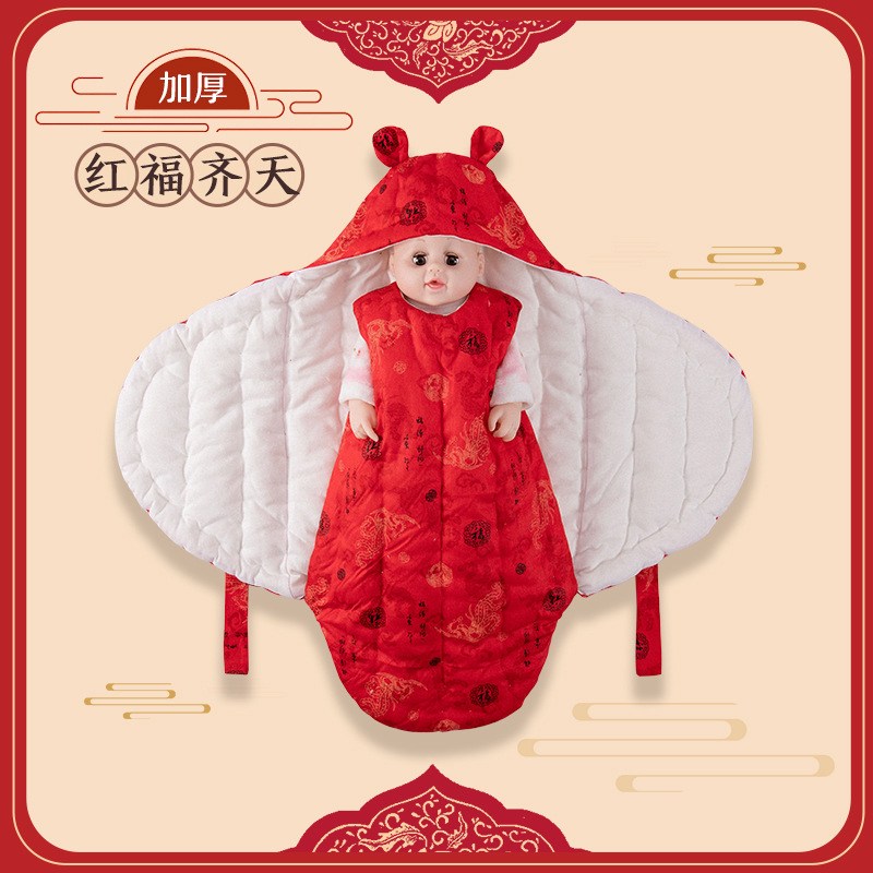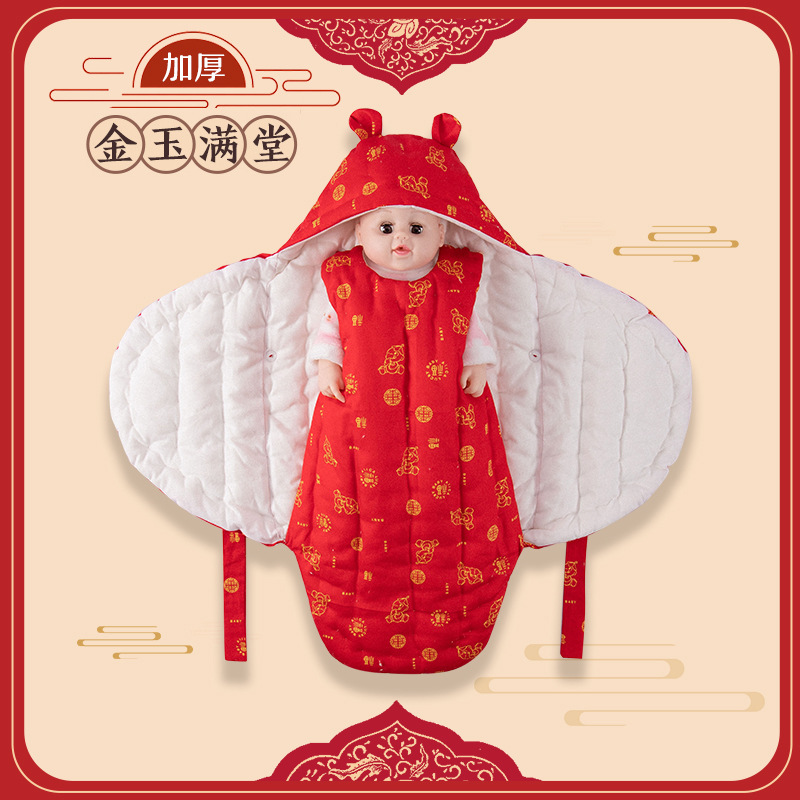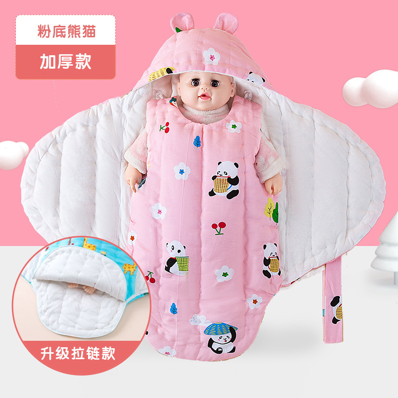 순수 수제 면 신생아 아기 가방 가을과 겨울 두꺼운 순면 깜짝 놀람 방지 나비 이불 스트랩 침낭 담요