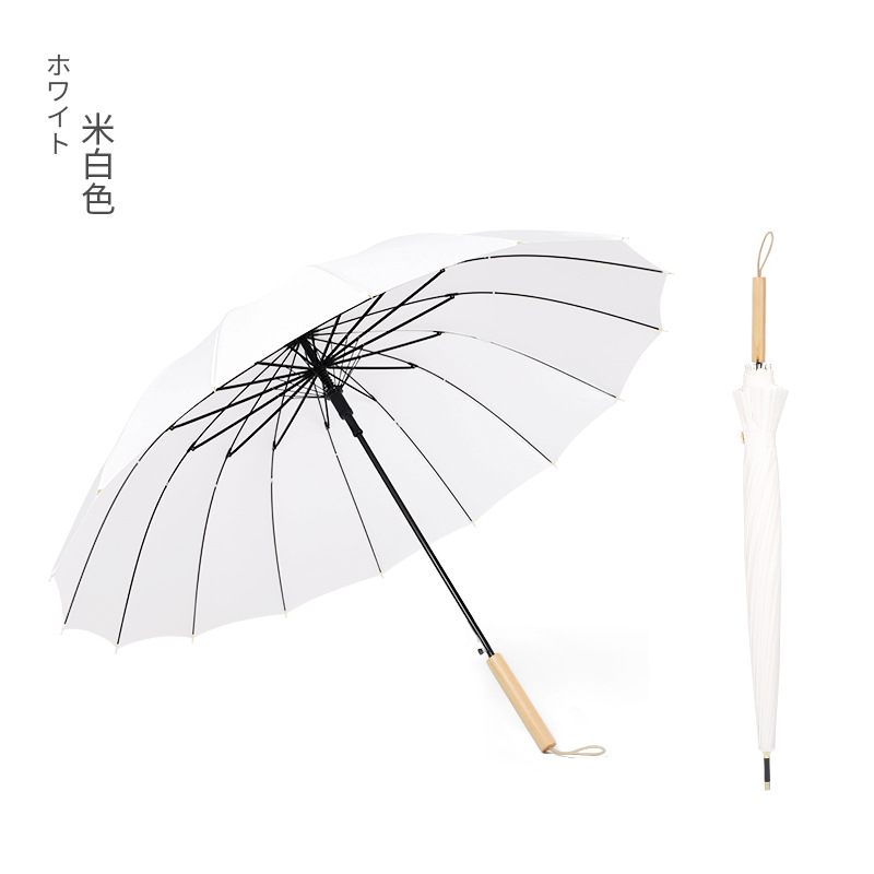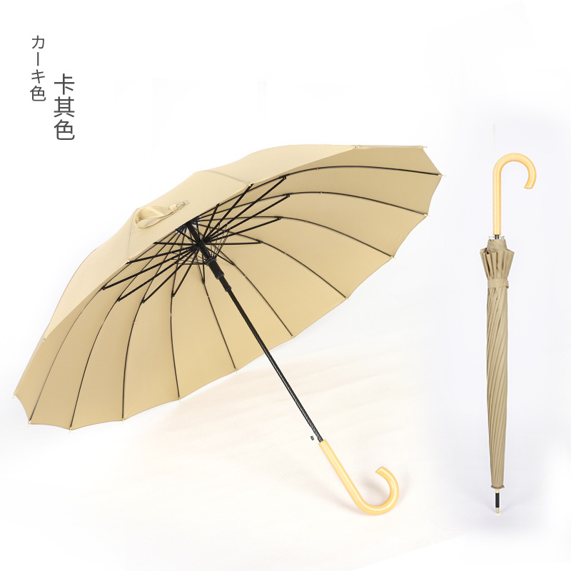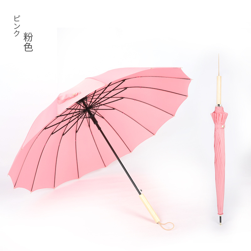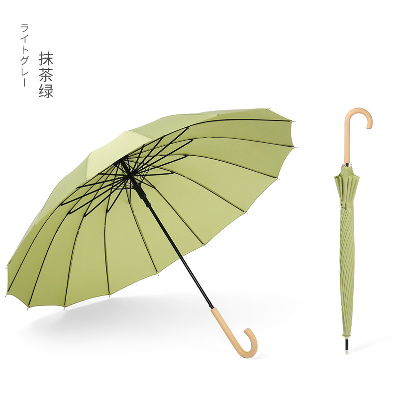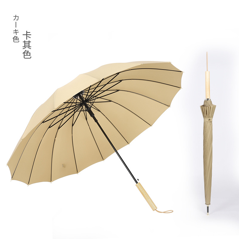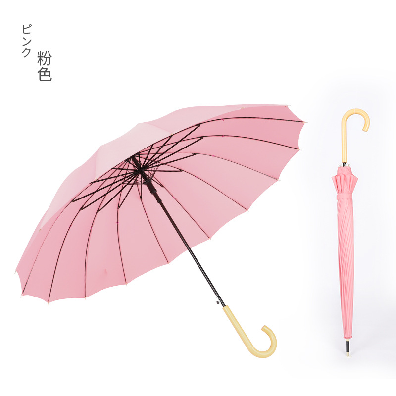 한국 스타일 16 나무 손잡이 양산, 심플한 디자인의 여성용 단색 긴 손잡이 우산, 광고 로고 인쇄 가능스토어 가기
