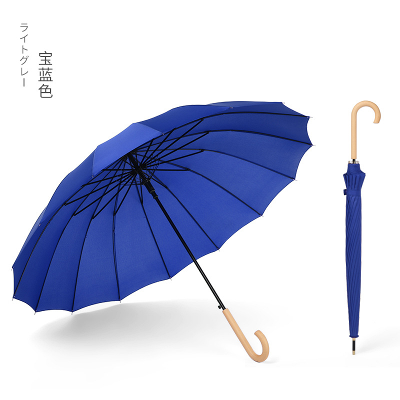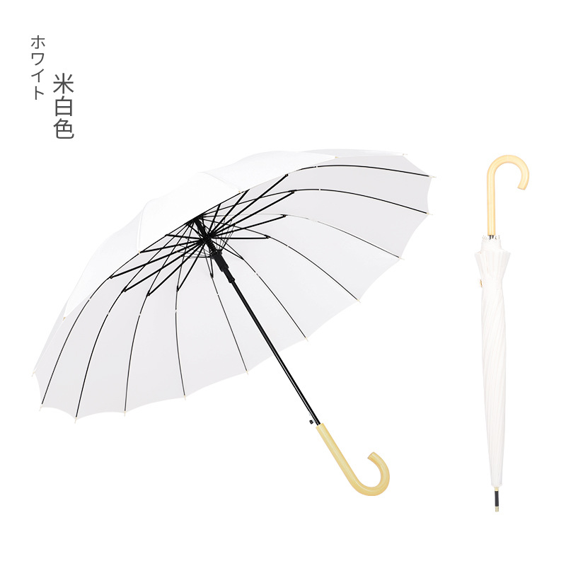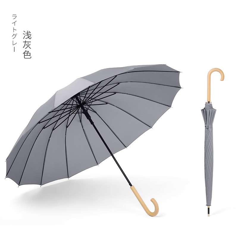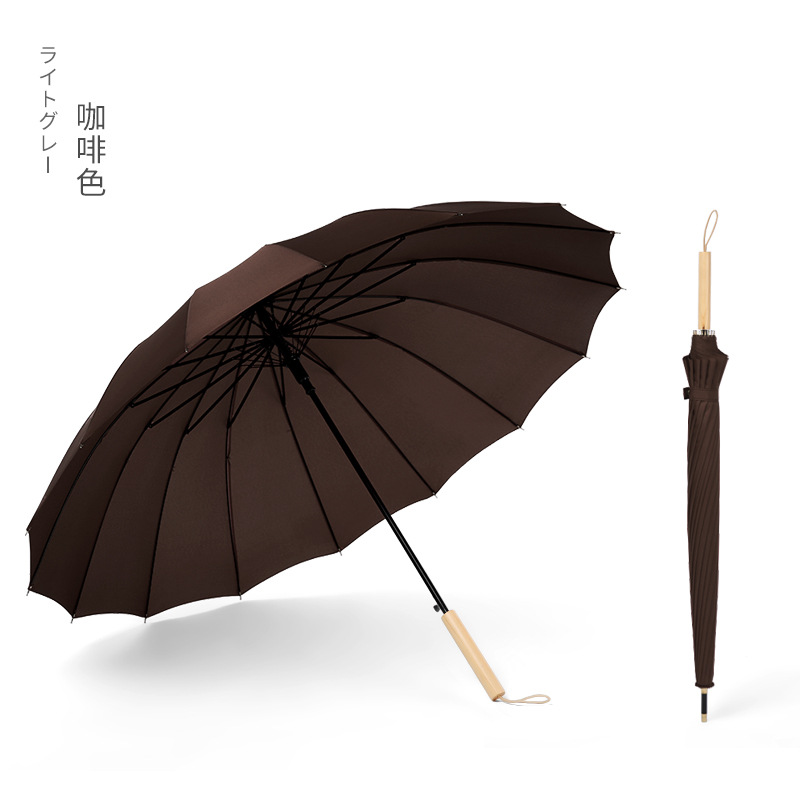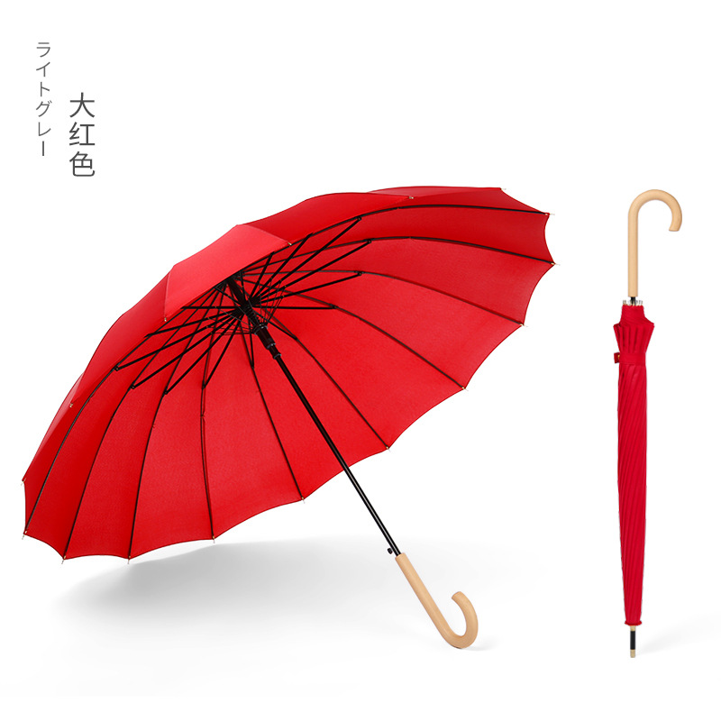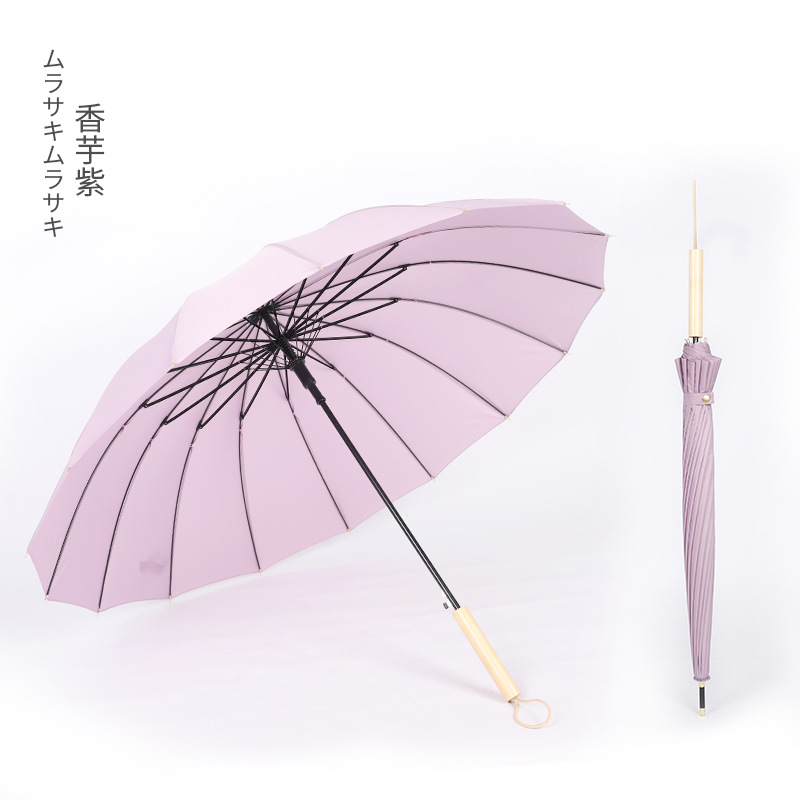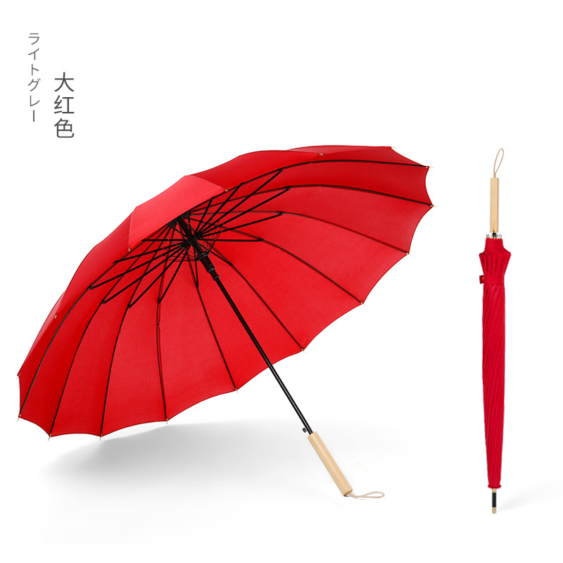 한국 스타일 16 나무 손잡이 양산, 심플한 디자인의 여성용 단색 긴 손잡이 우산, 광고 로고 인쇄 가능스토어 가기