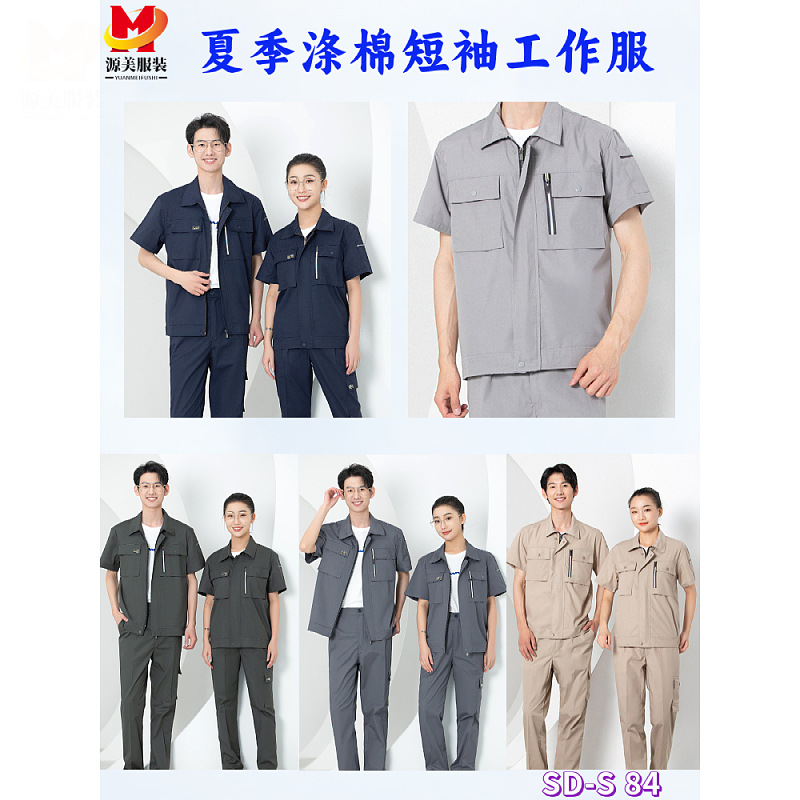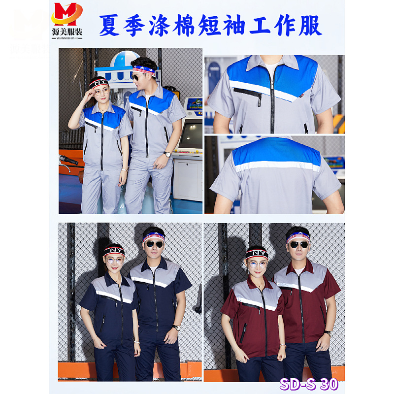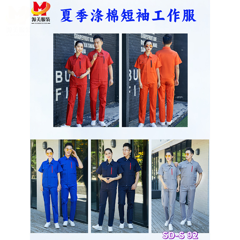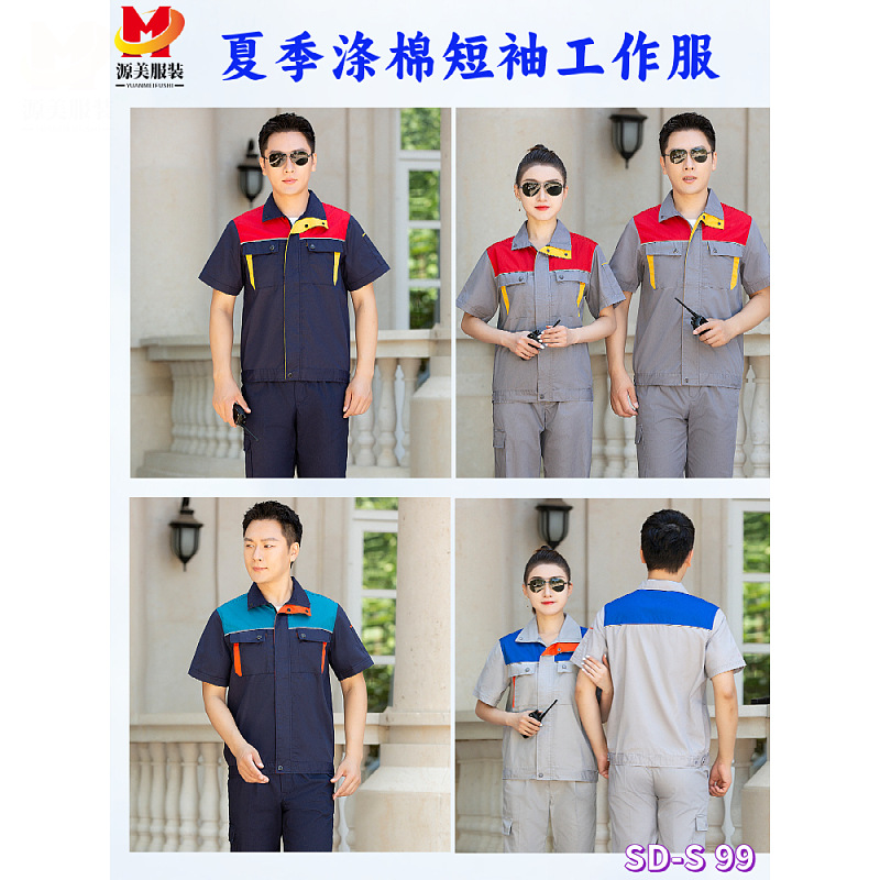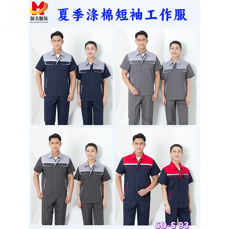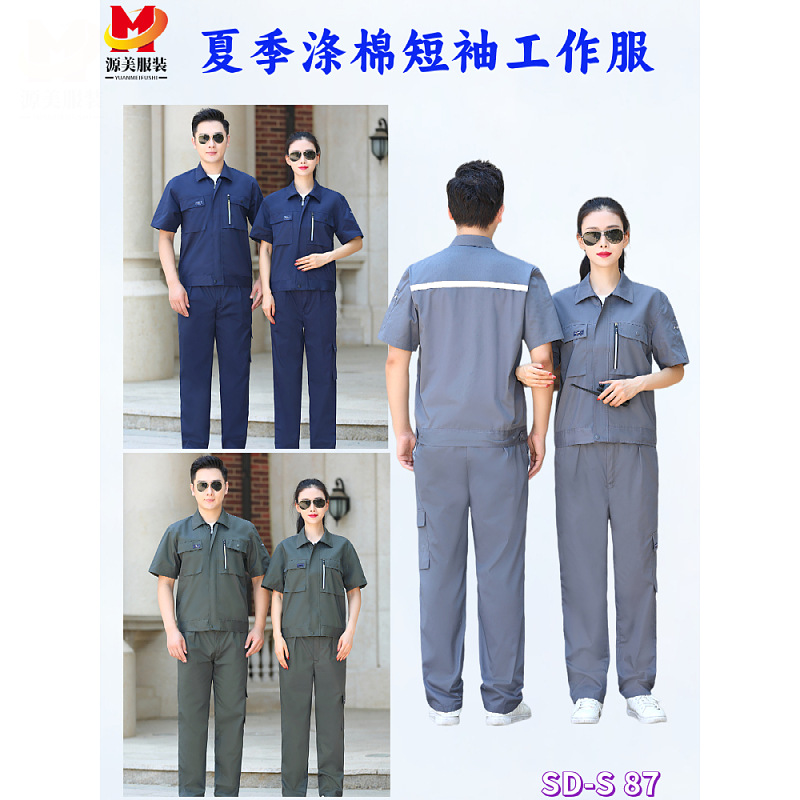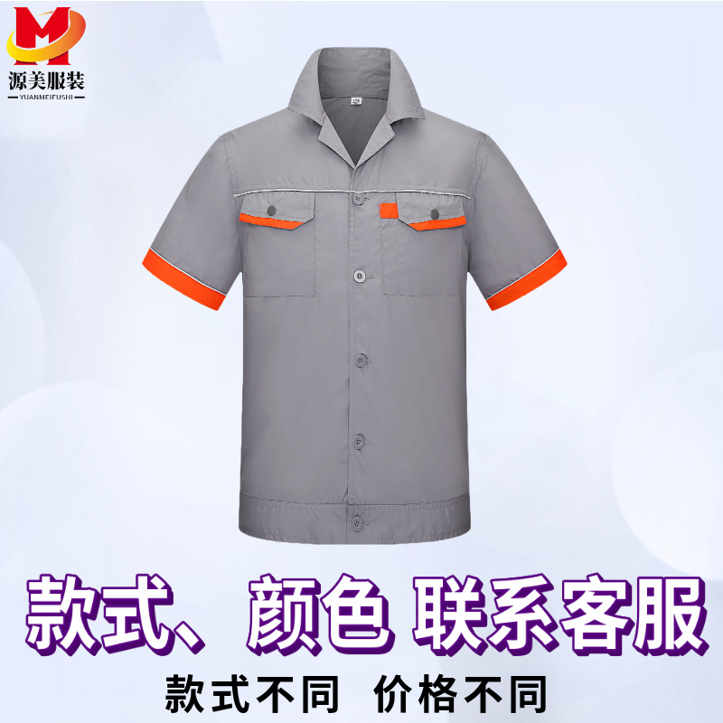 남성과 여성의 내마 모성 여름 작업장 의류 탑 세트 인쇄 자동 수리 용접기 노동 보호 의류 세트 반팔 바지스토어 가기