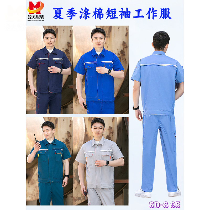 남성과 여성의 내마 모성 여름 작업장 의류 탑 세트 인쇄 자동 수리 용접기 노동 보호 의류 세트 반팔 바지