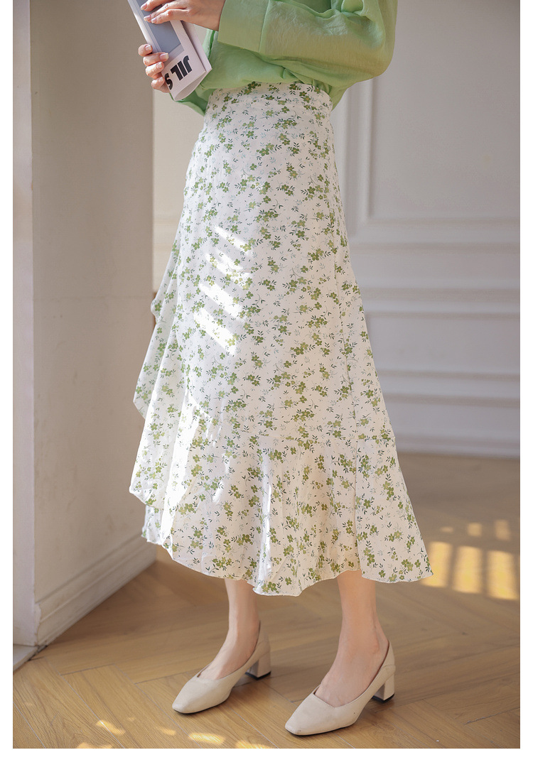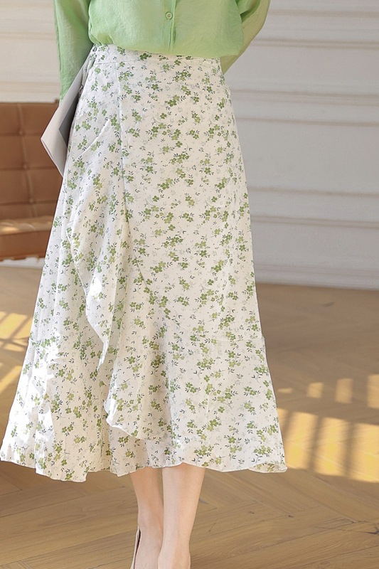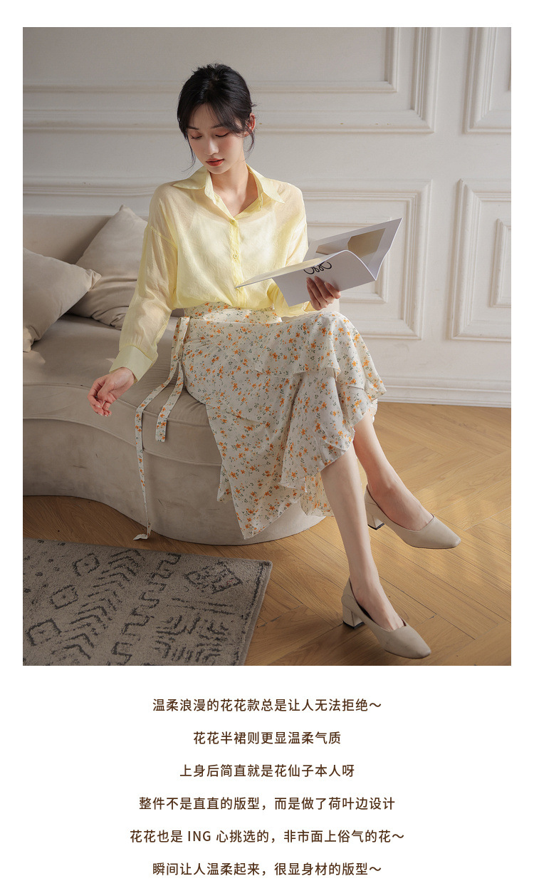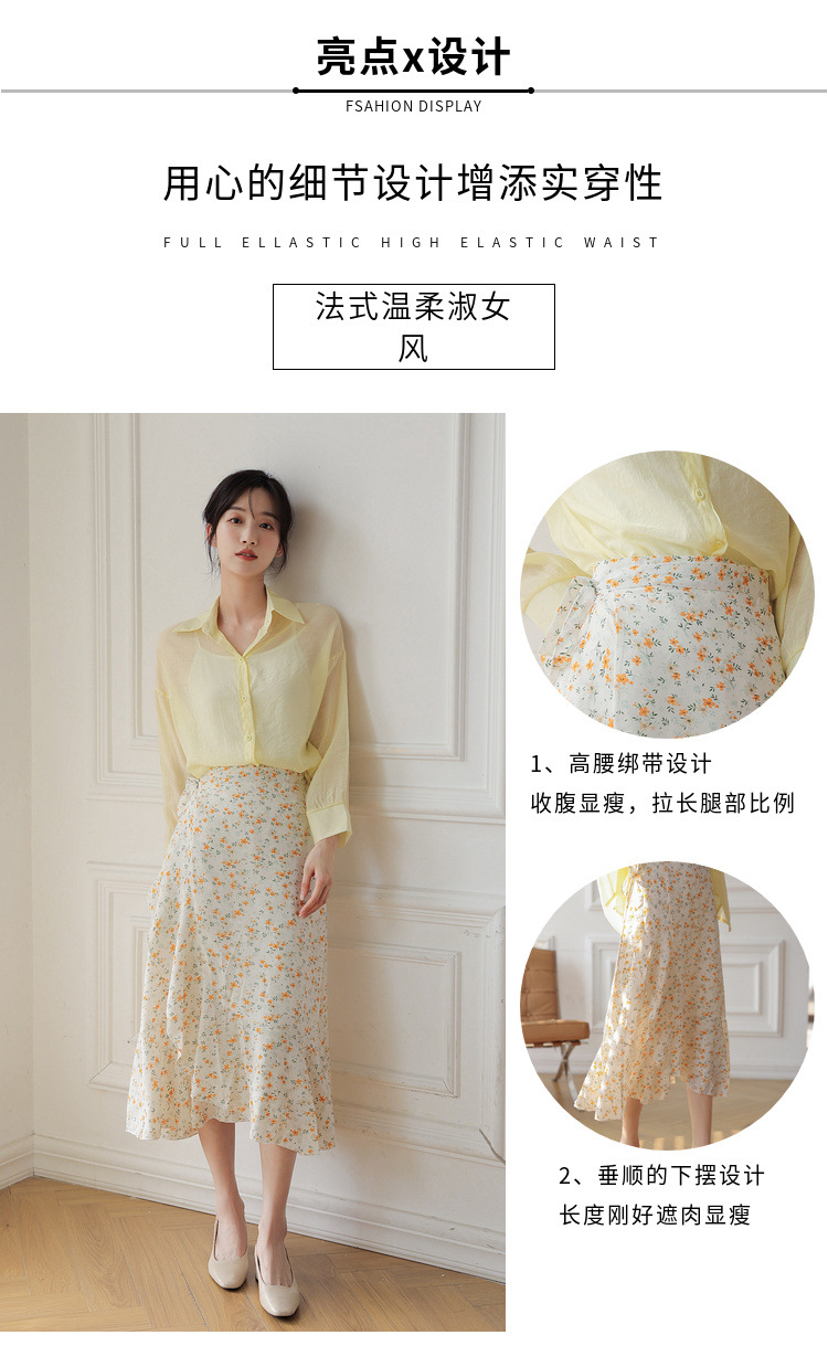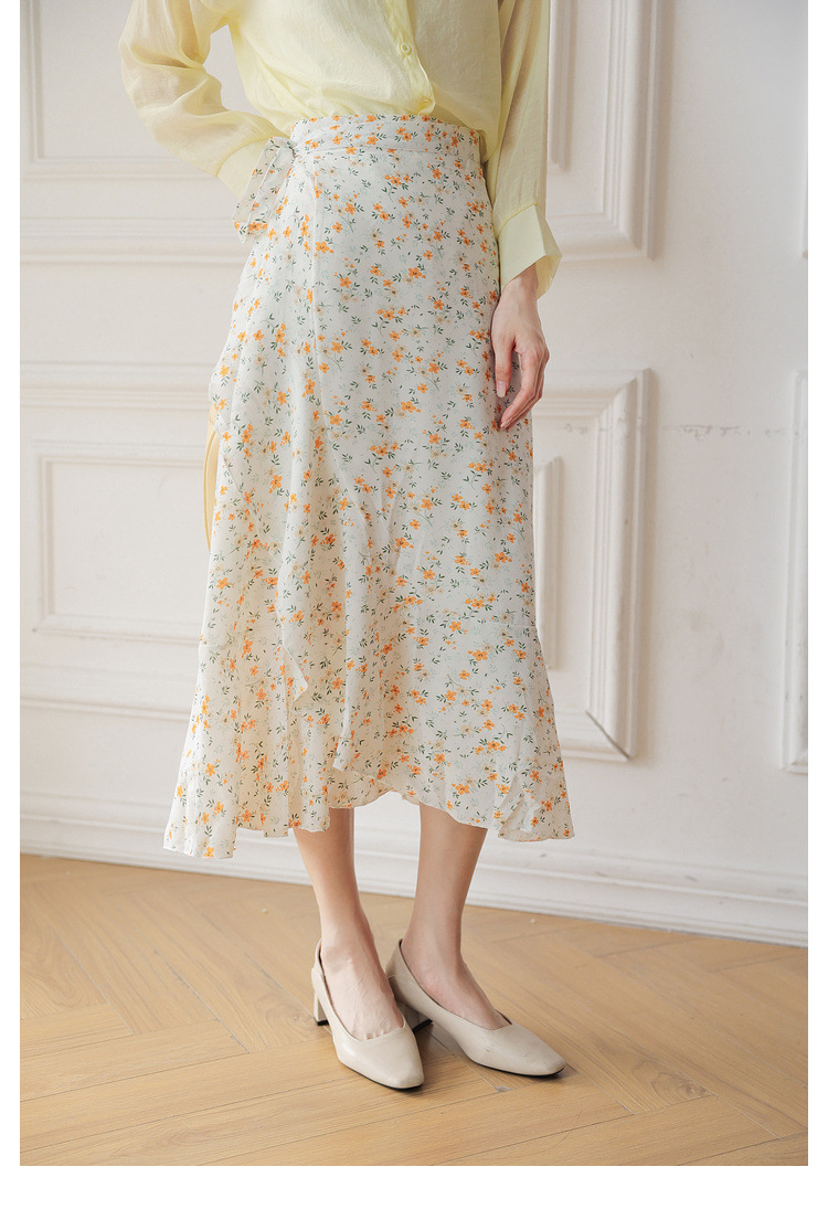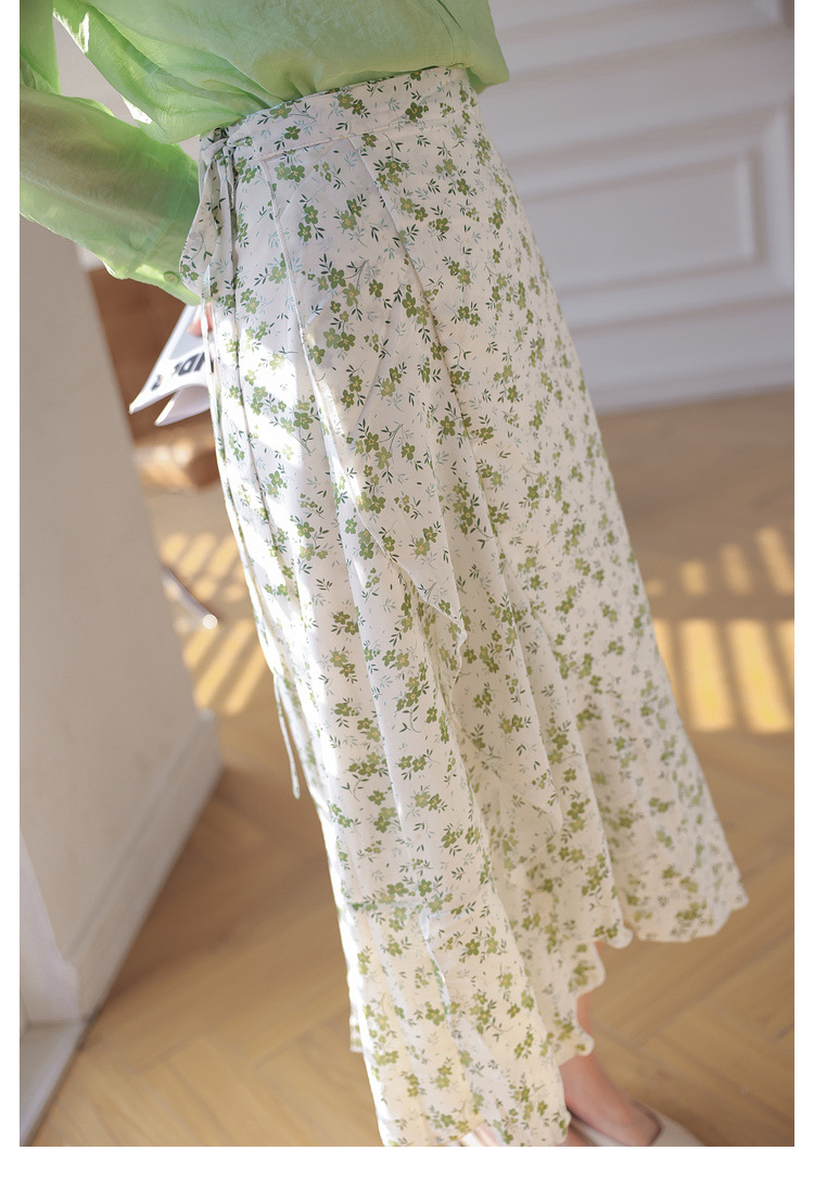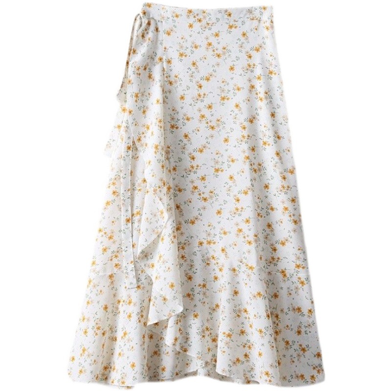 리얼 샷 원피스 빈티지 쉬폰 플로럴 레이스 업 스커트 하이 웨이스트 비치 미드 길이 프릴 랩 스커트스토어 가기
