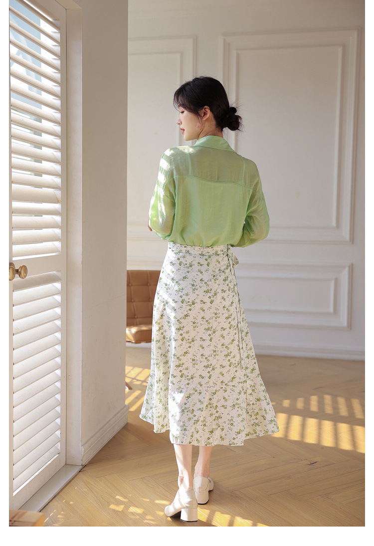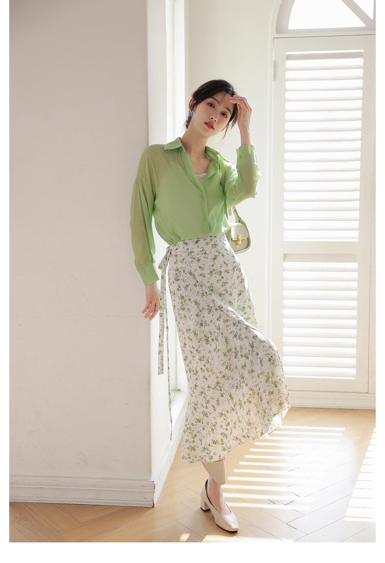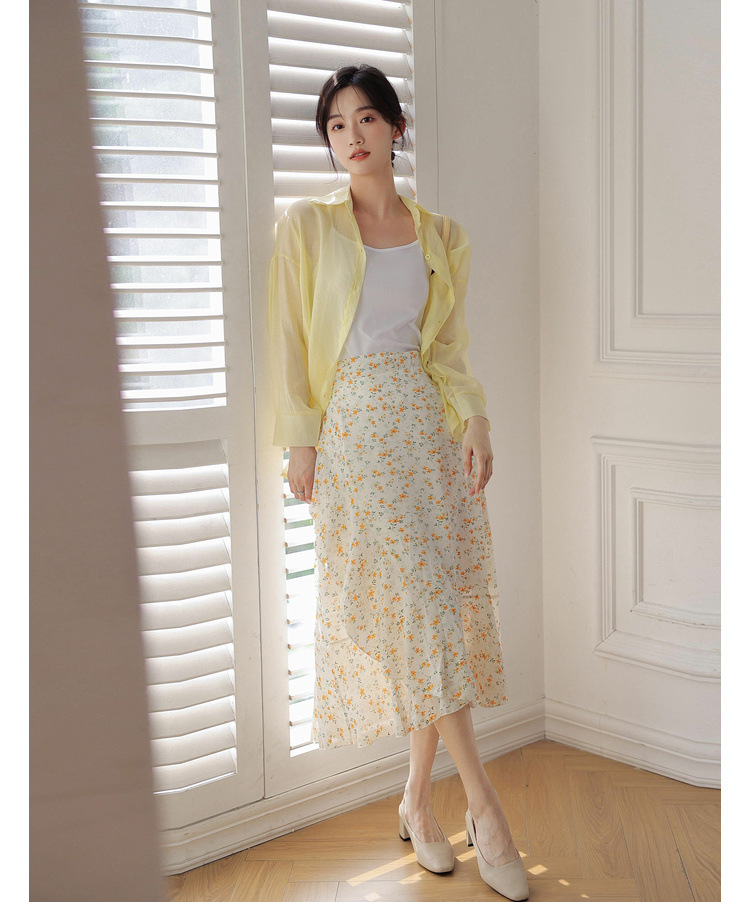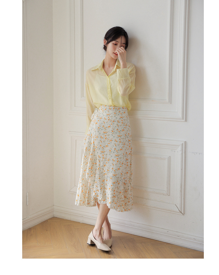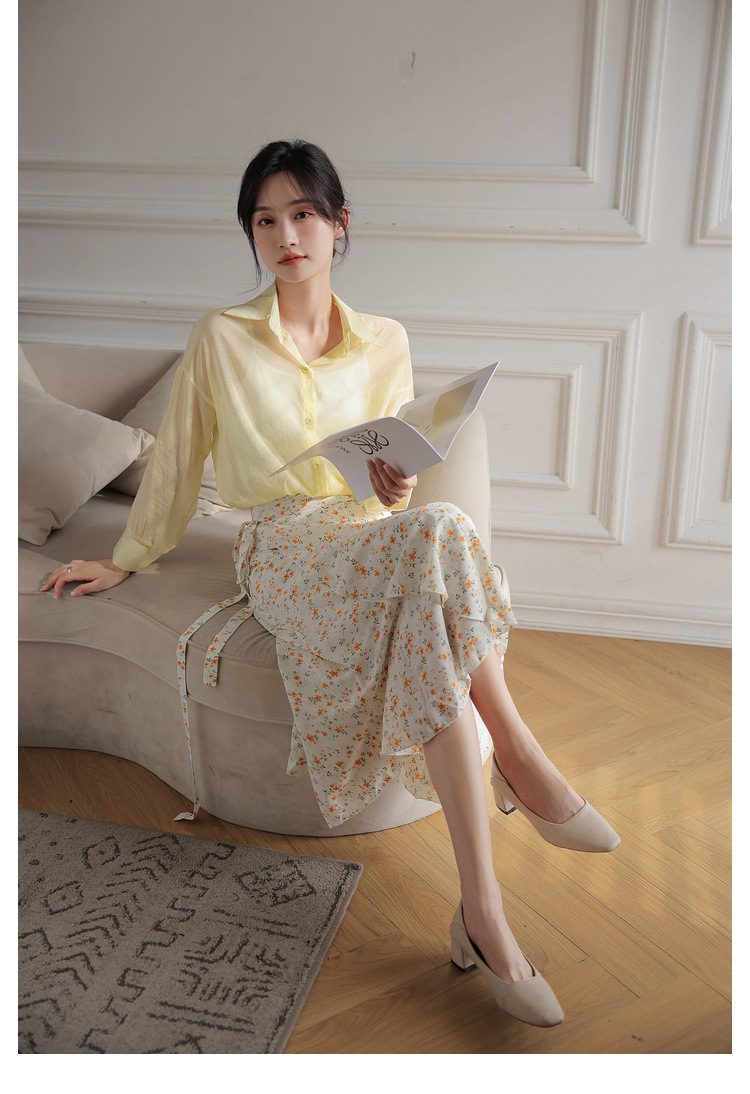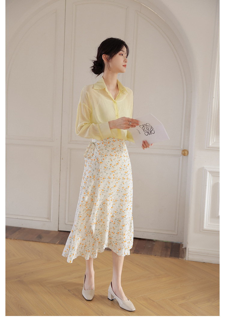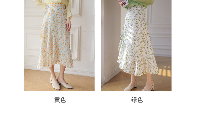 리얼 샷 원피스 빈티지 쉬폰 플로럴 레이스 업 스커트 하이 웨이스트 비치 미드 길이 프릴 랩 스커트스토어 가기
