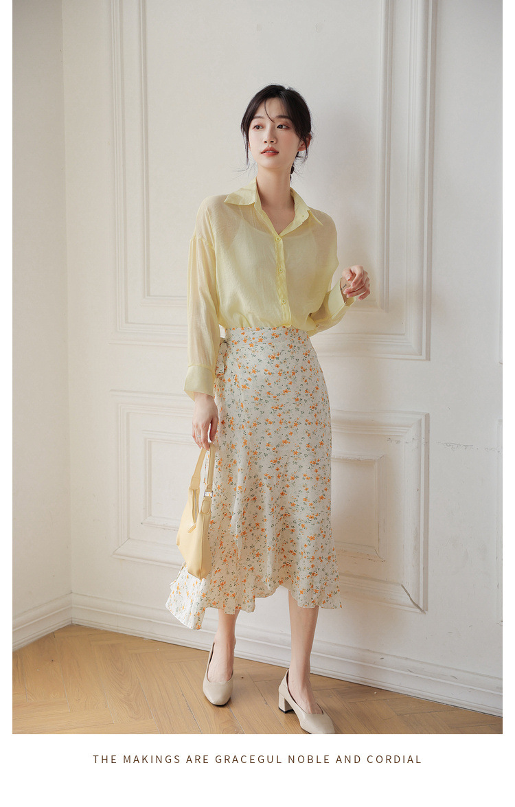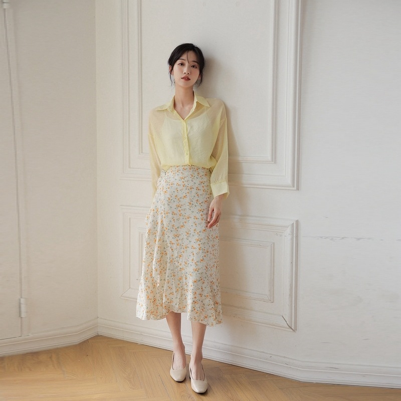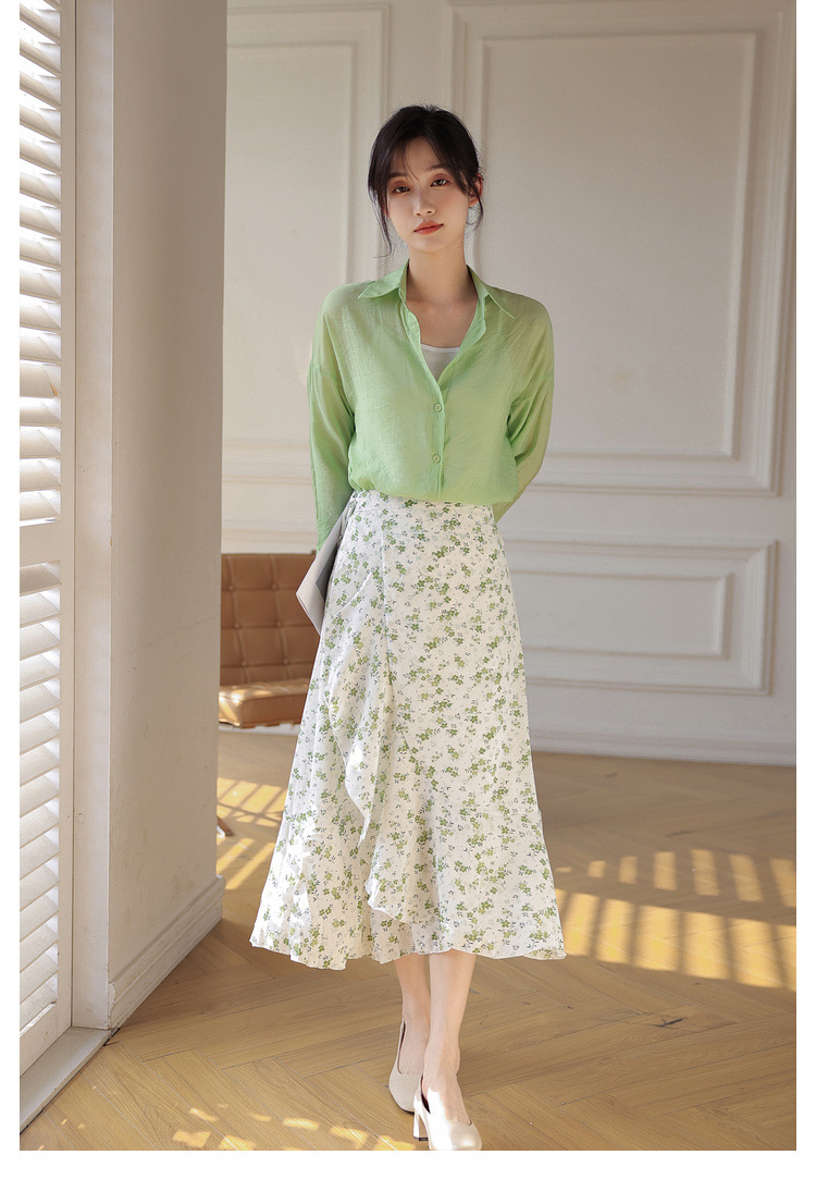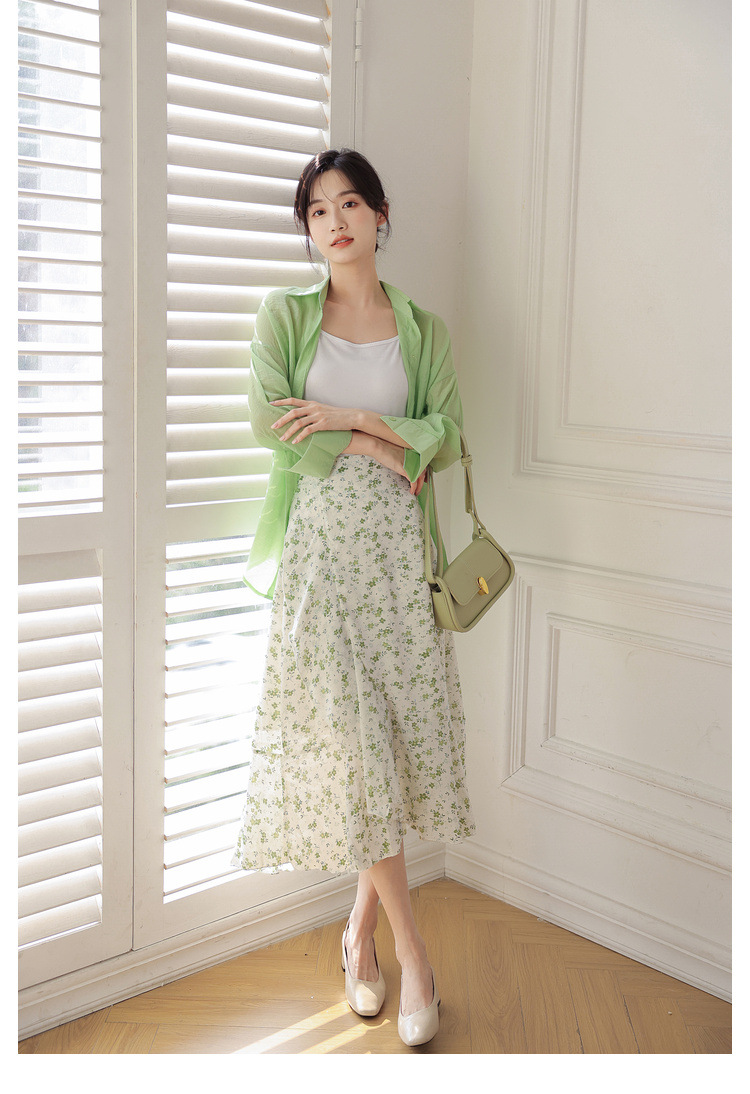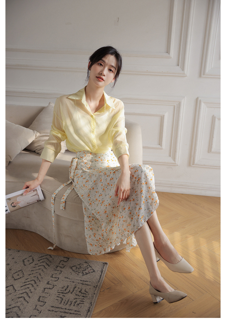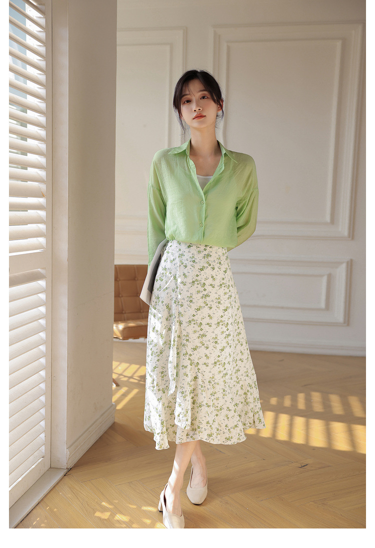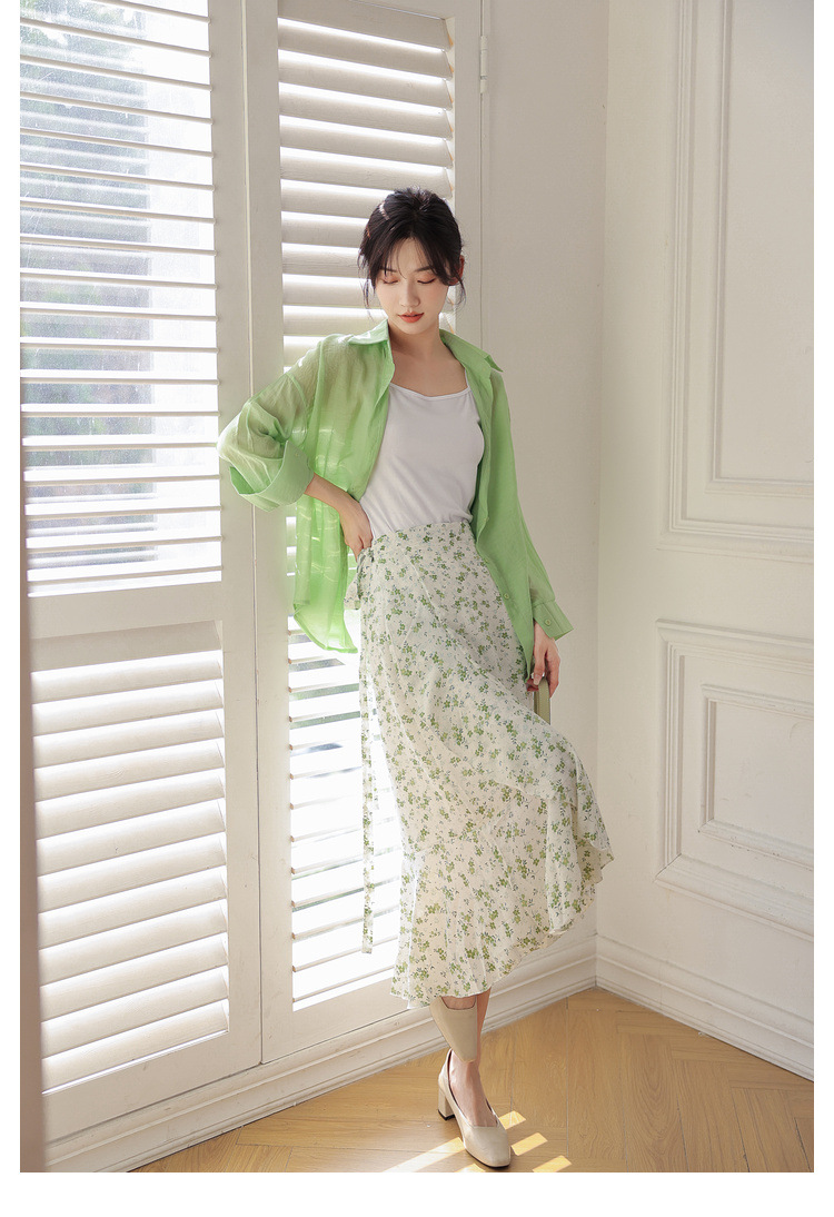 리얼 샷 원피스 빈티지 쉬폰 플로럴 레이스 업 스커트 하이 웨이스트 비치 미드 길이 프릴 랩 스커트스토어 가기