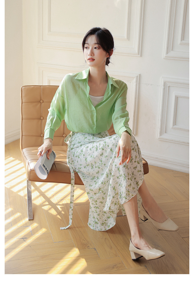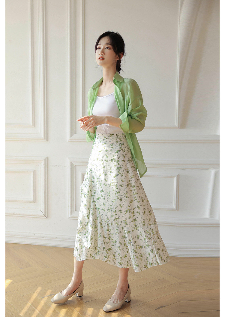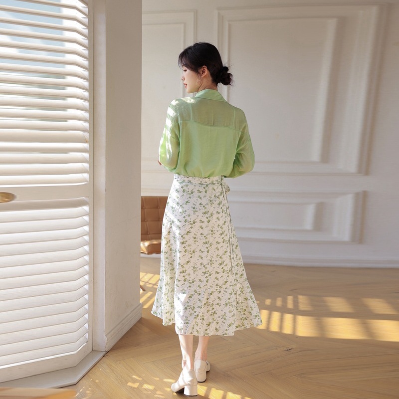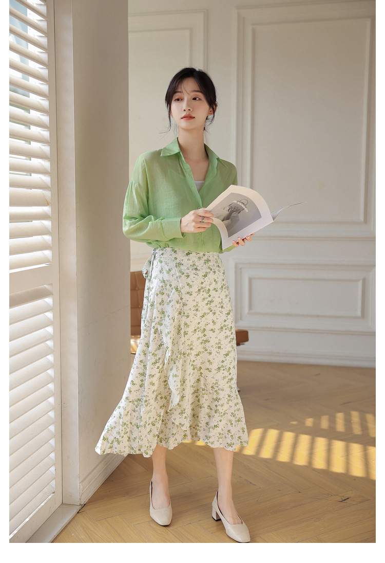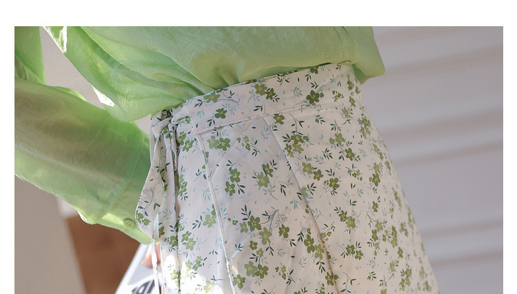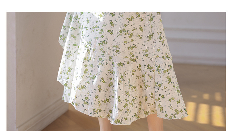 리얼 샷 원피스 빈티지 쉬폰 플로럴 레이스 업 스커트 하이 웨이스트 비치 미드 길이 프릴 랩 스커트