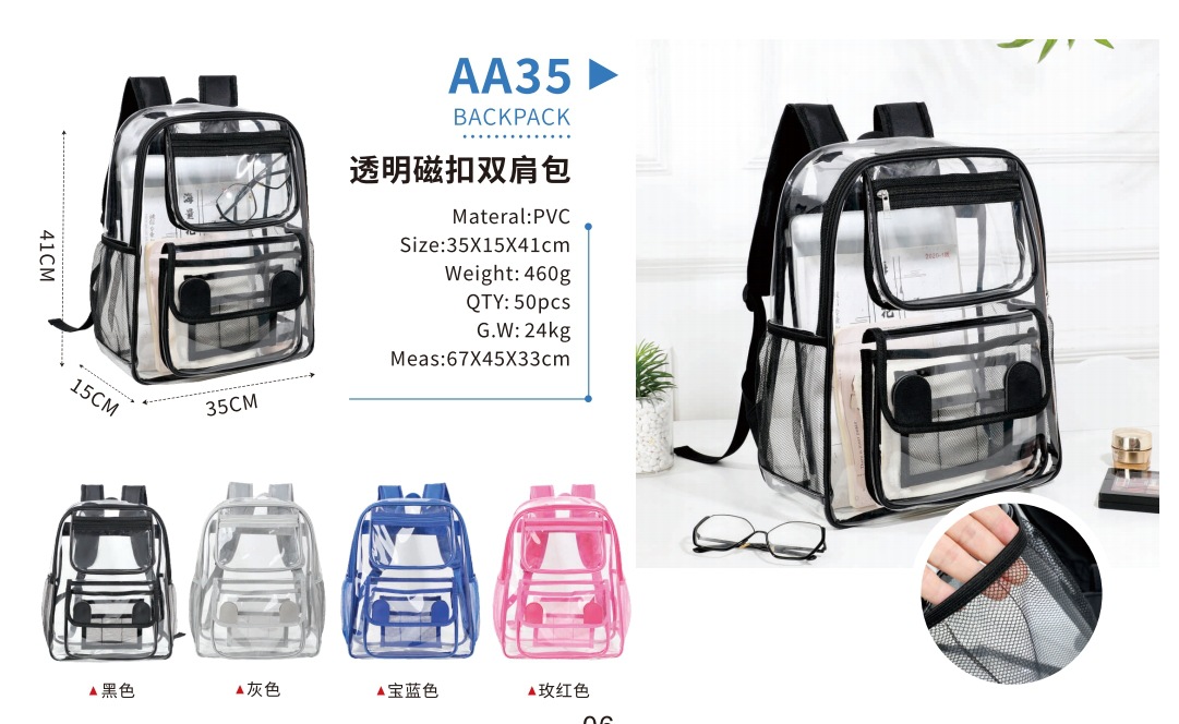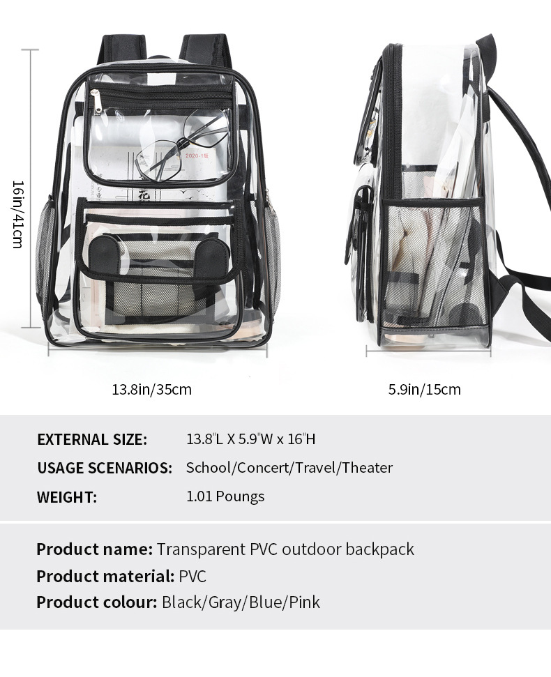 국경 간 뜨거운 판매 스팟 인 한국 스타일 Schoolbag 대용량 야외 여행 배낭 투명 PVC 방수 배낭