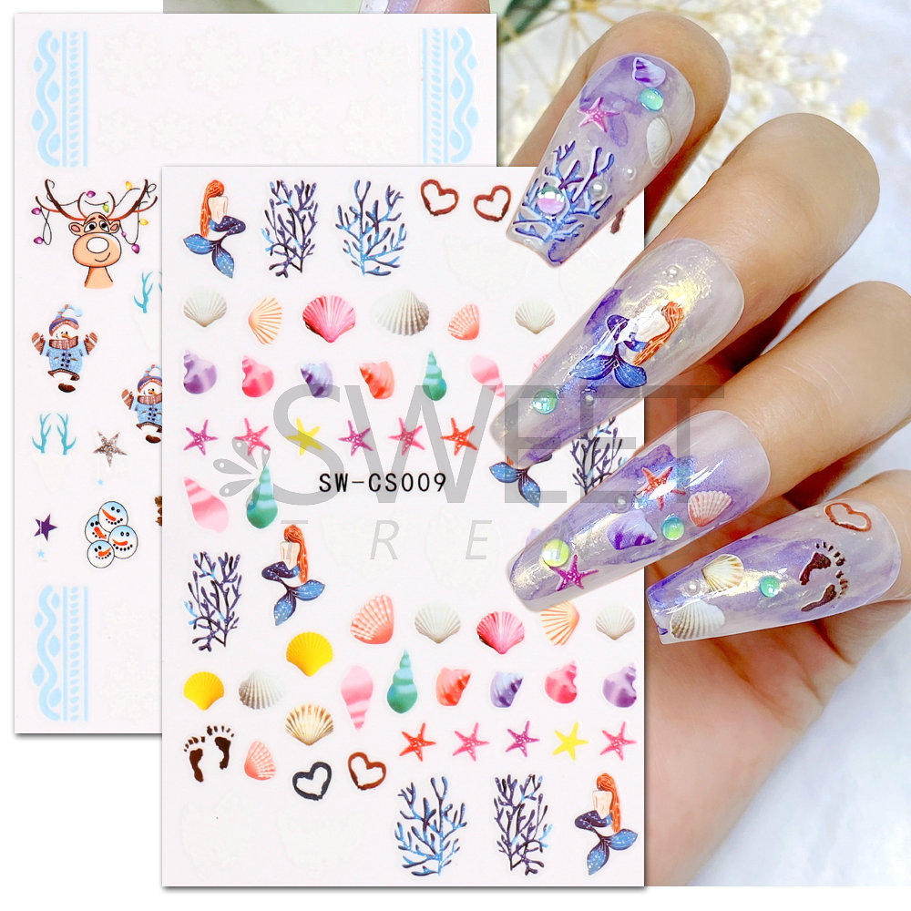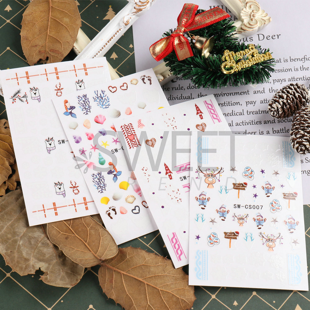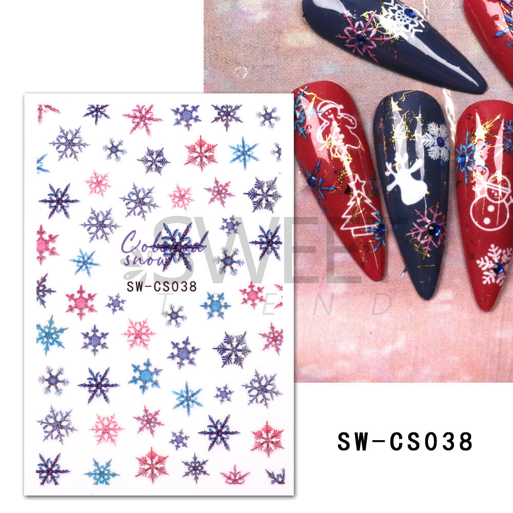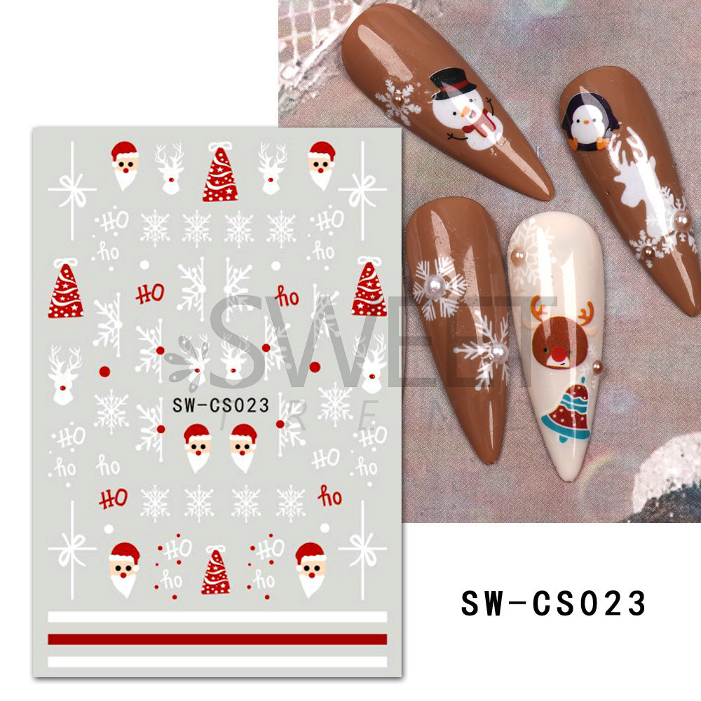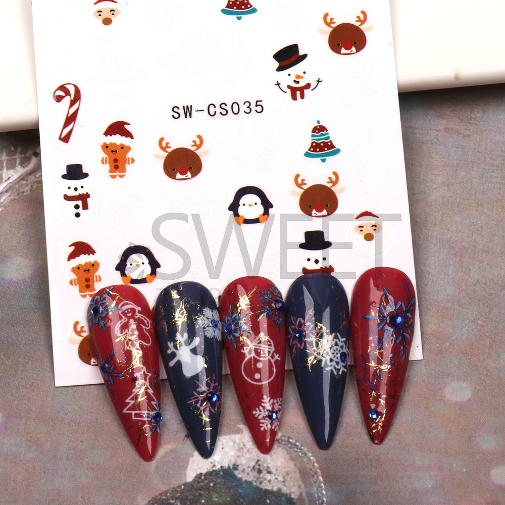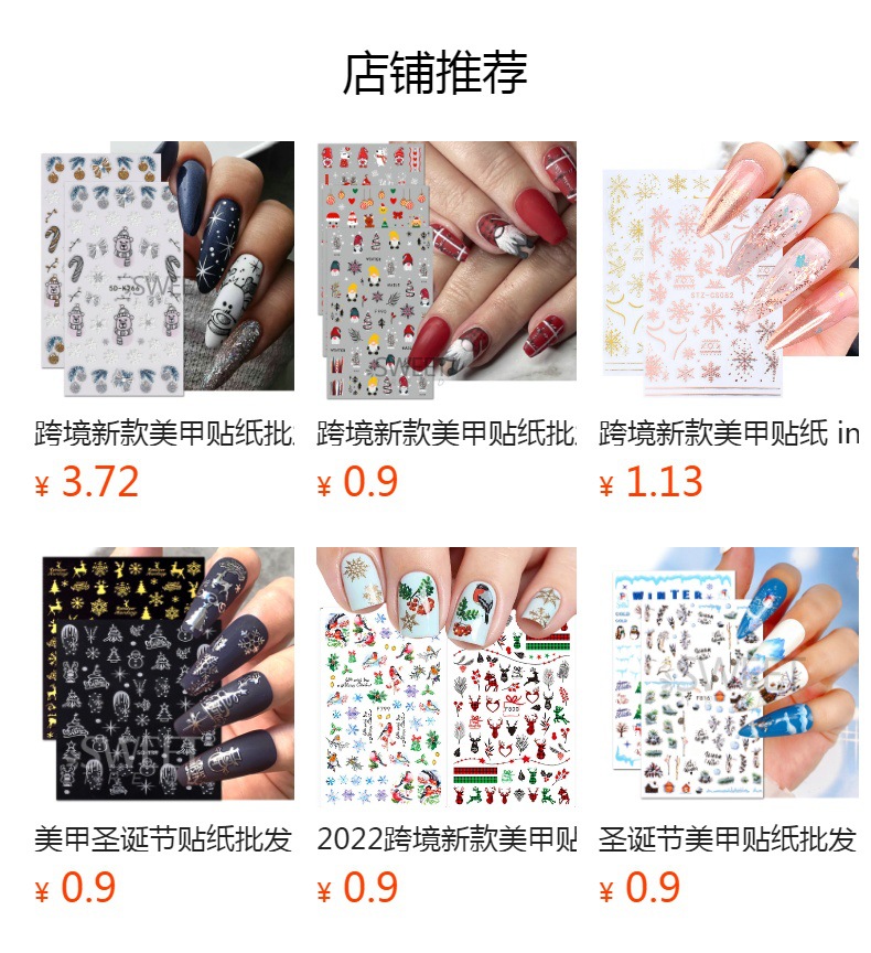 크리스마스 네일 아트 스티커 도매 뜨거운 크리스마스 눈송이 얼음 꽃 산타 새끼 사슴 네일 스티커 손톱스토어 가기