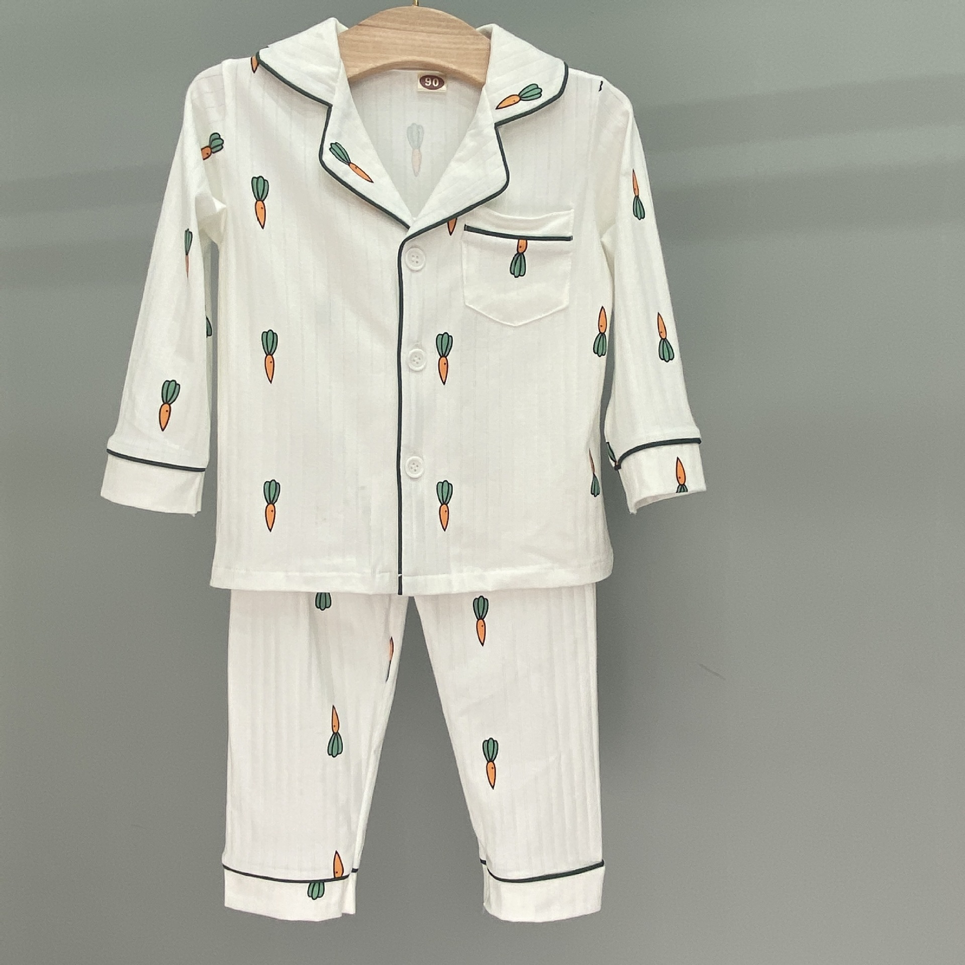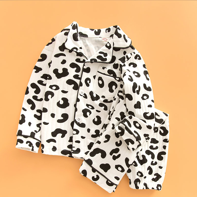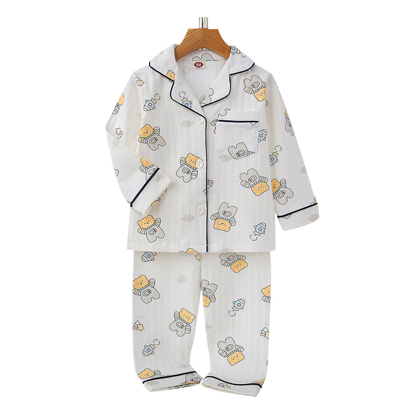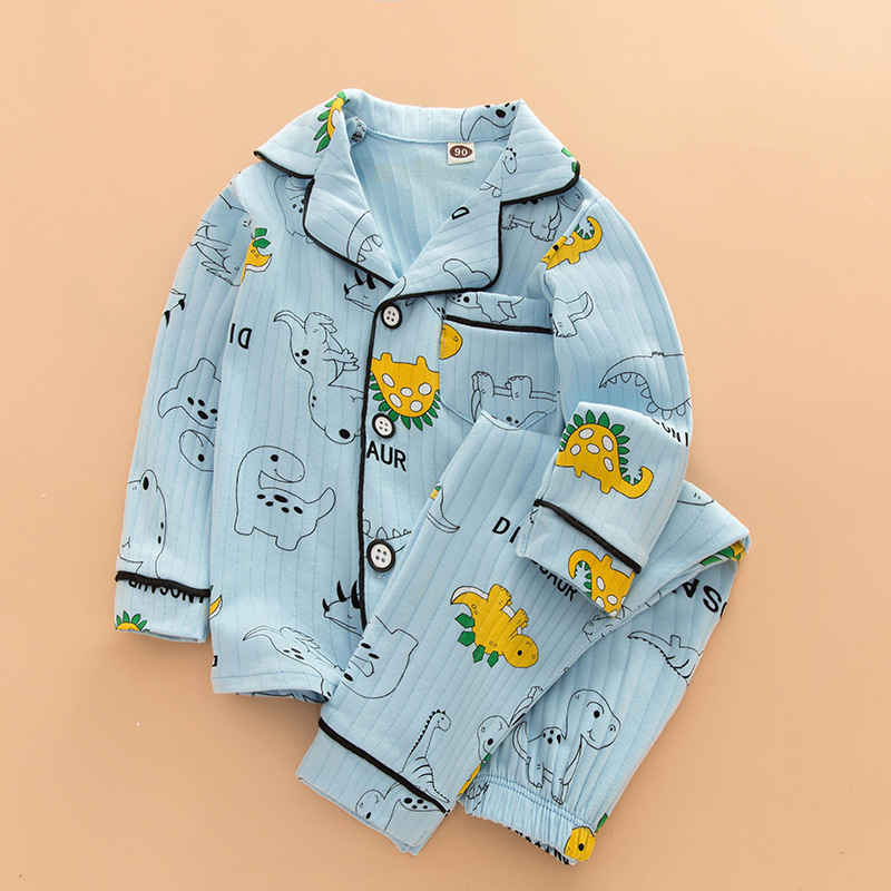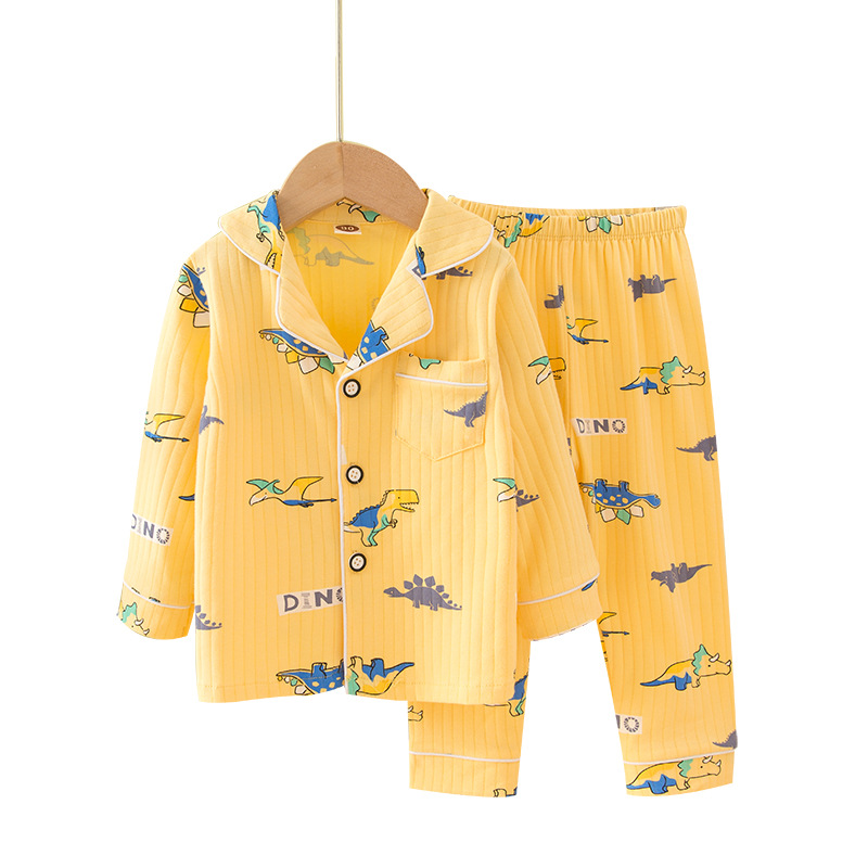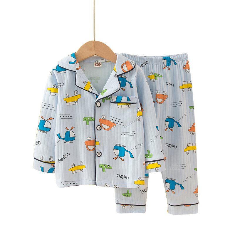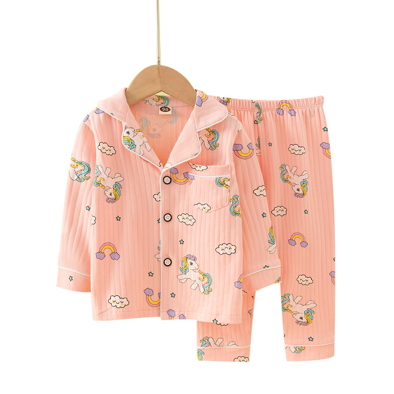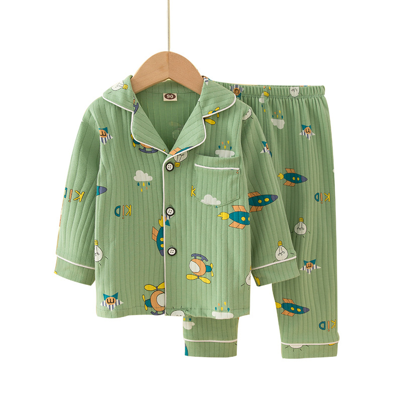 어린이 잠옷 봄과 가을 긴 소매 가디건 아기의 가정 옷 편안한 면 스트립 오픈 버튼 어린이 만화 소년과 소녀 세트