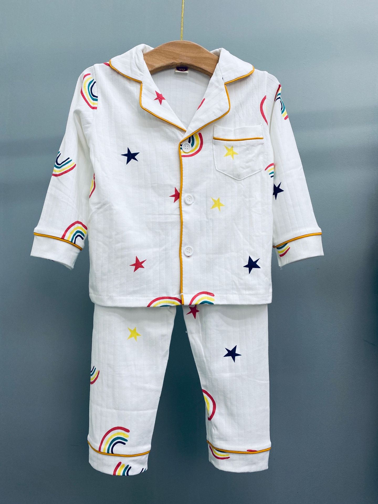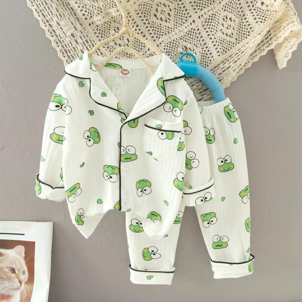 어린이 잠옷 봄과 가을 긴 소매 가디건 아기의 가정 옷 편안한 면 스트립 오픈 버튼 어린이 만화 소년과 소녀 세트스토어 가기