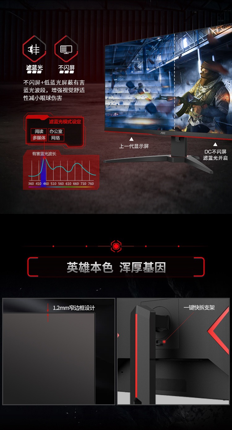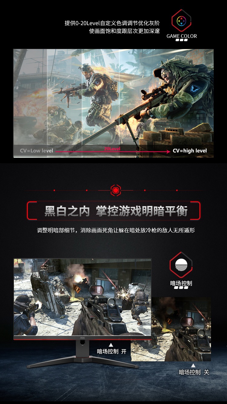 AOC 디스플레이 27 인치 165Hz 재생 속도 비디오 게임 HD 화면 벽 마운트에 적합스토어 가기