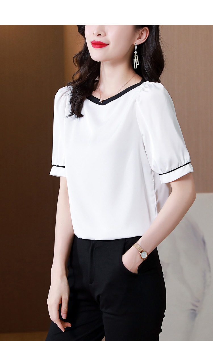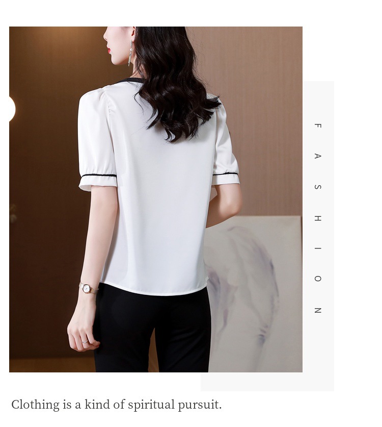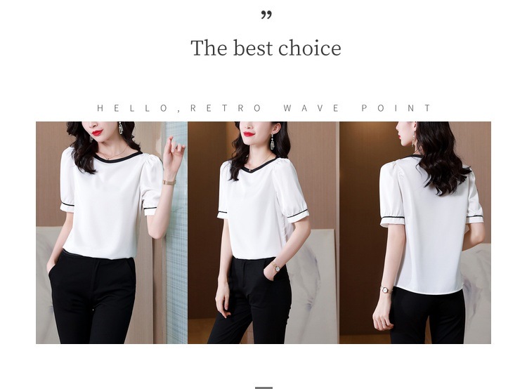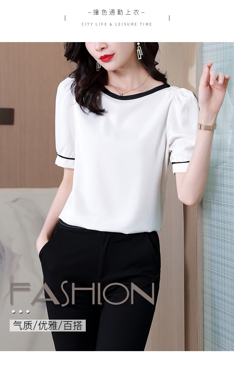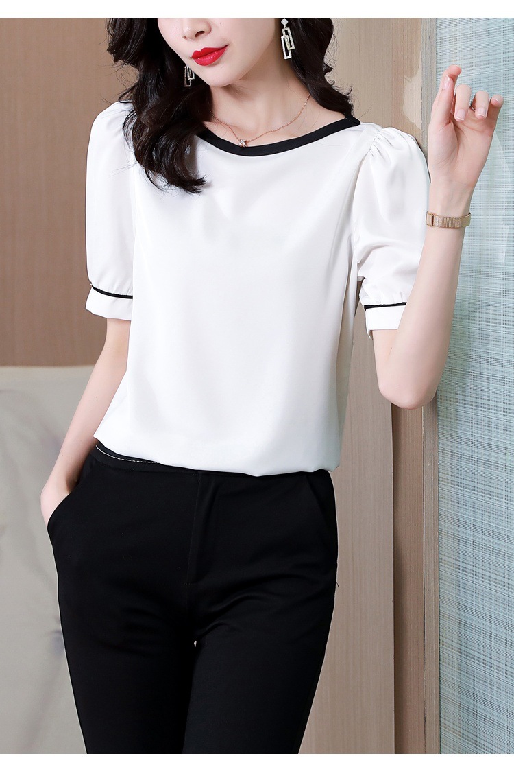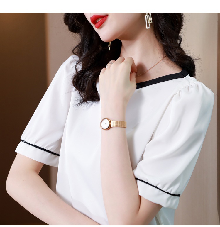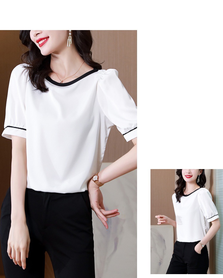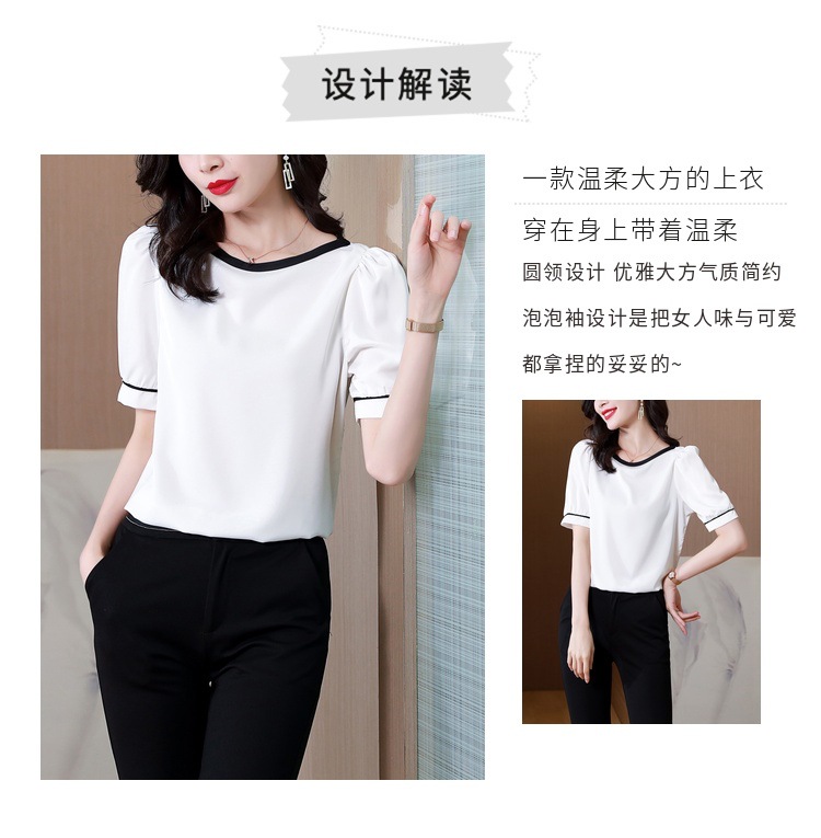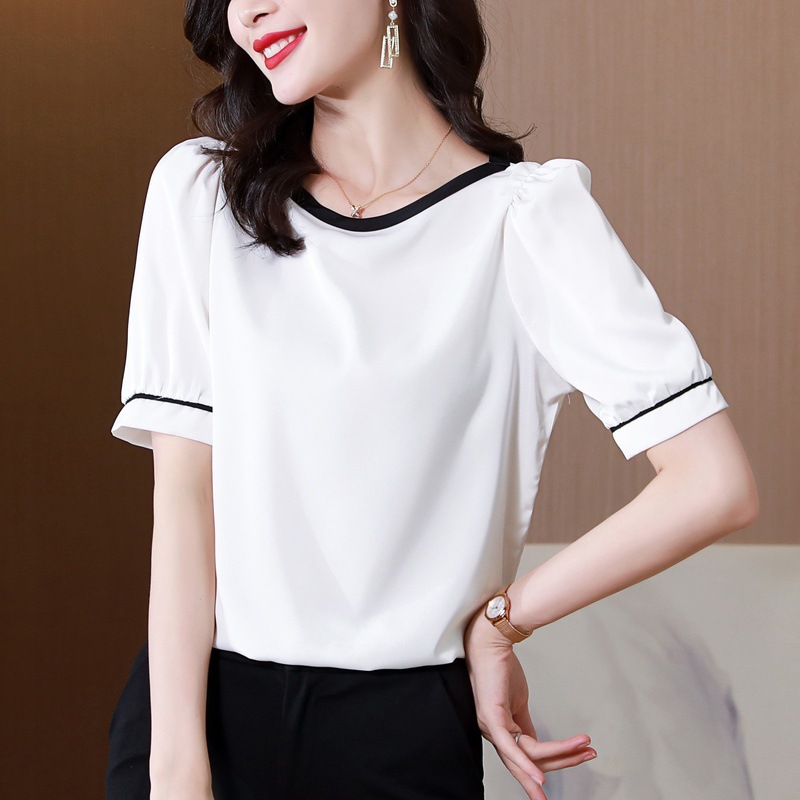 리얼 샷 2022 여름 새로운 한국 스타일 유행 반팔 쉬폰 셔츠 여성용 슬리밍 배꼽 덮음 티셔츠 새틴 탑스토어 가기
