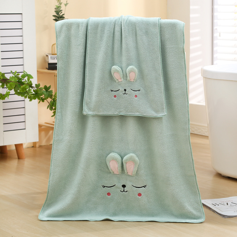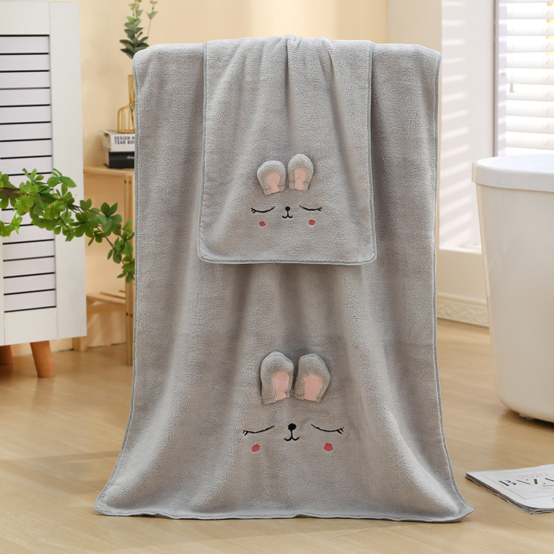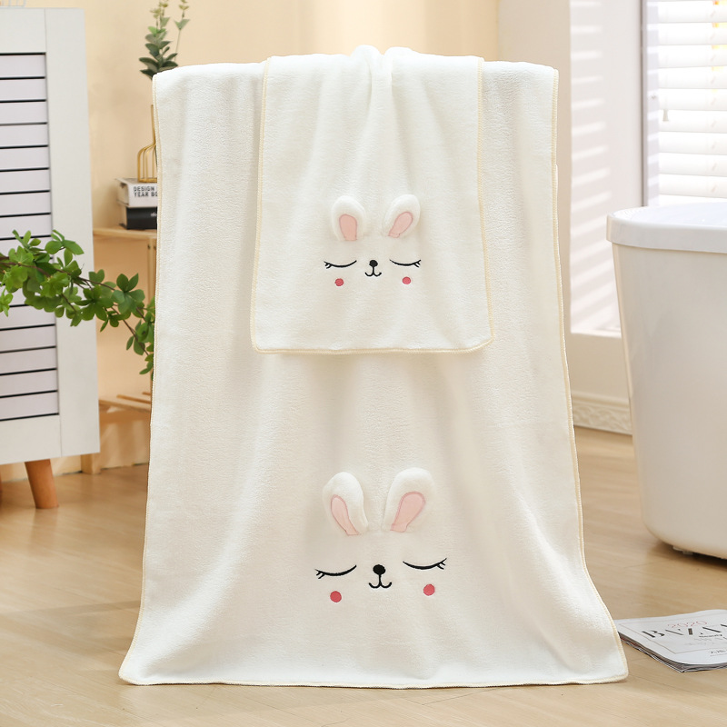 만화 토끼 귀 산호 양털 수건 목욕 타올 세트 부드러운 물 흡수성 어머니와 아들 세트 타월 비치 타올 선물 타올스토어 가기