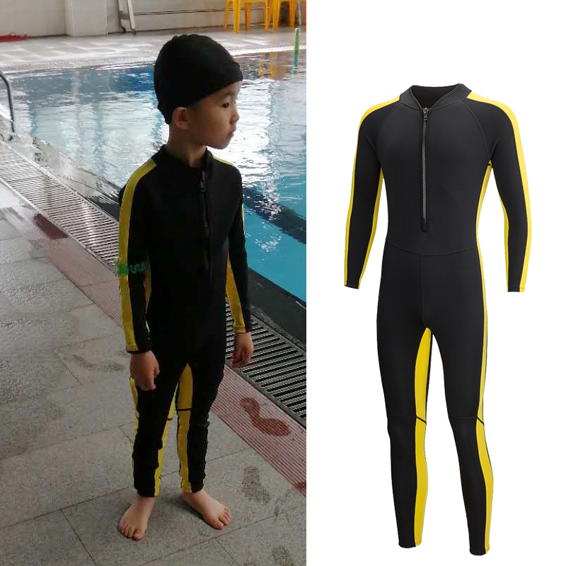 어린이 따뜻한 다이빙 세트 원피스 1.5mm 브루스 리 따뜻한 수영 자외선 차단제 노란색 수영복스토어 가기
